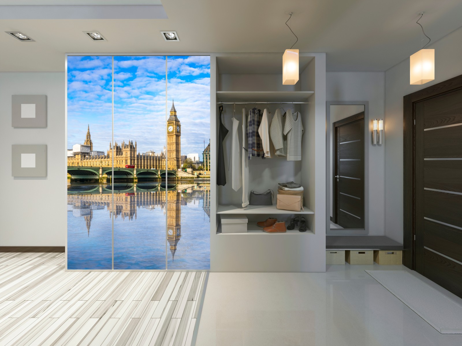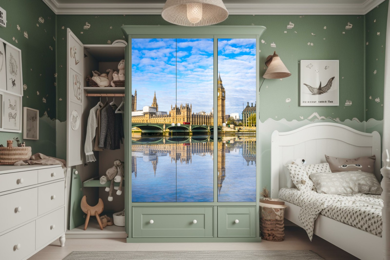 Schrankaufkleber London skyline mit spiegelung auf dem fluss