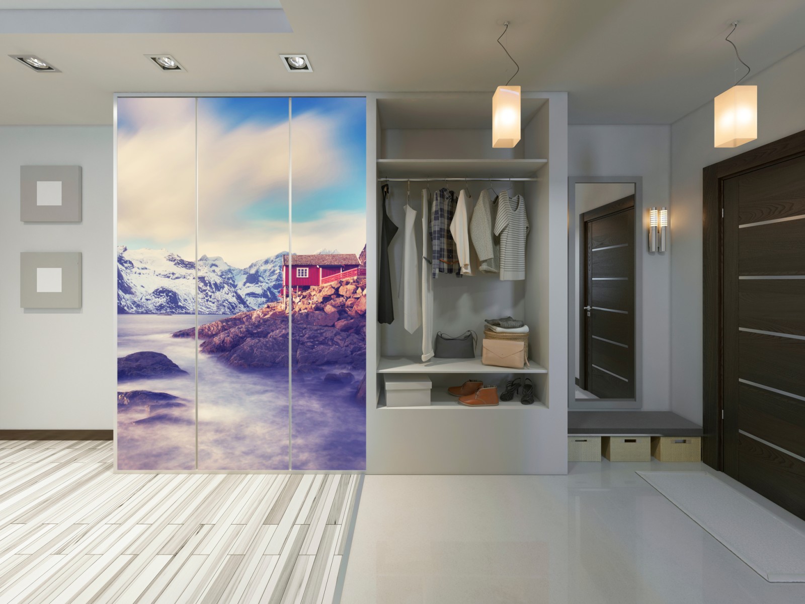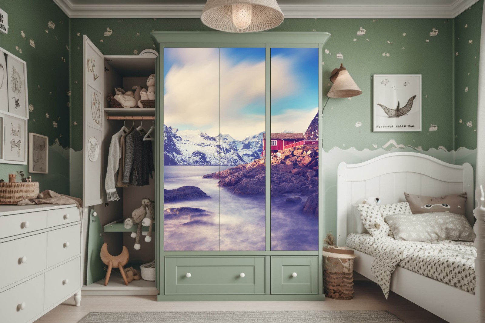Schrankaufkleber Küstengebirge mit roten hütten