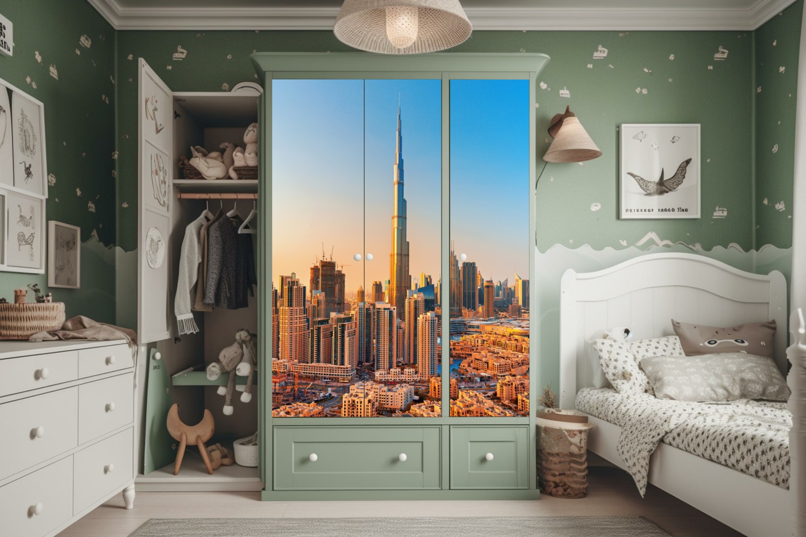 Schrankaufkleber Dubai skyline in der goldenen stunde