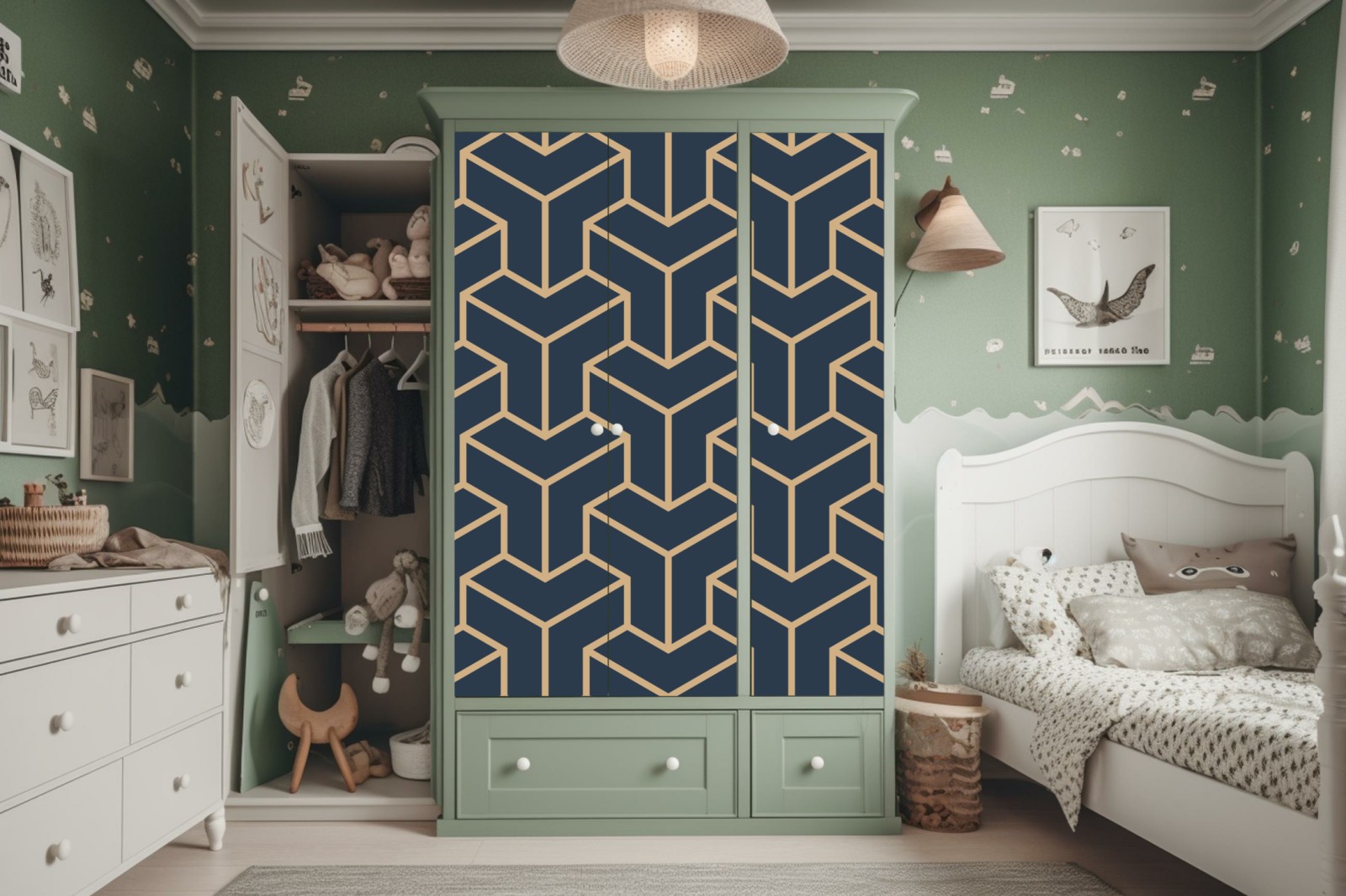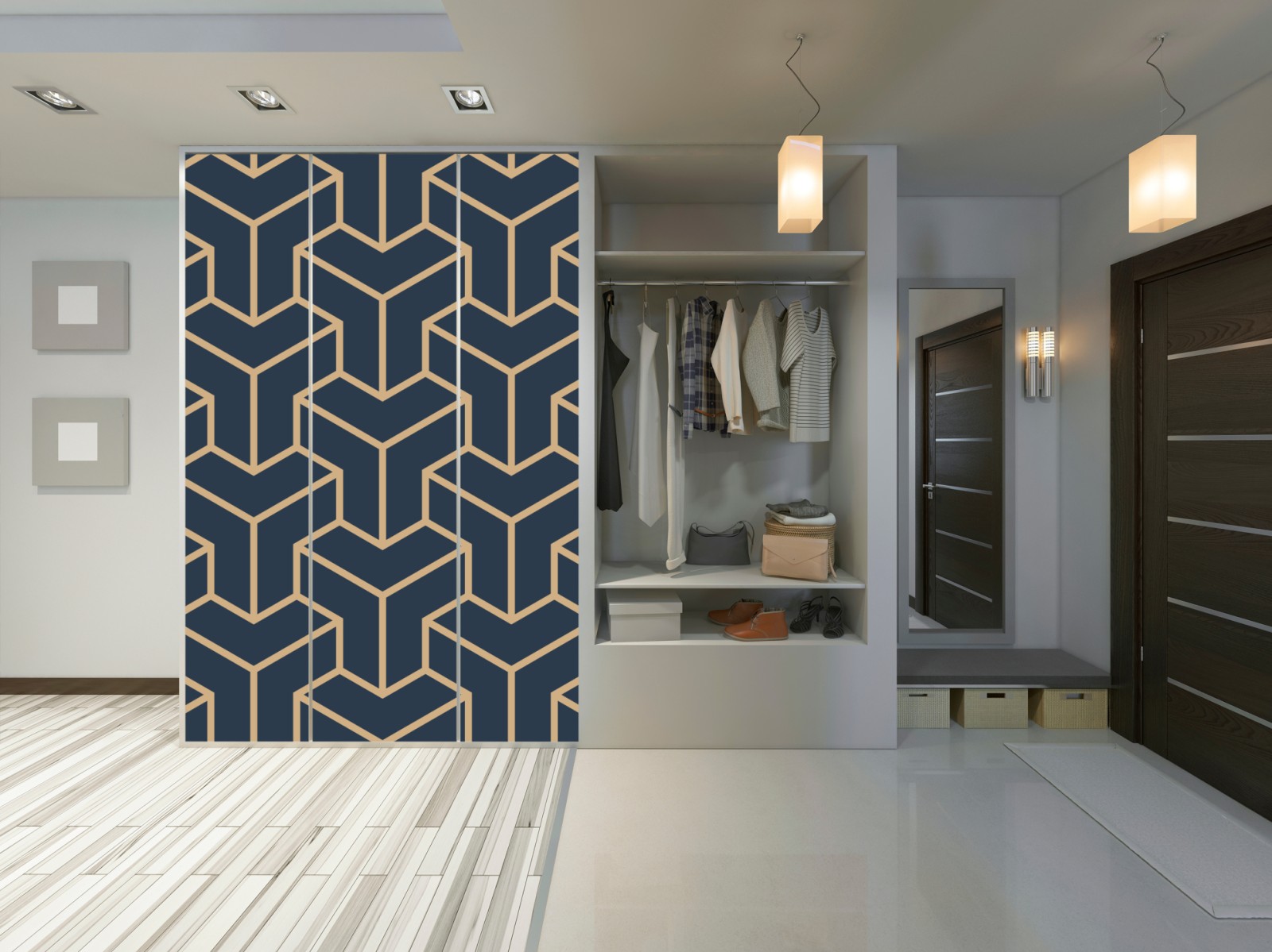 Schrankaufkleber Marineblaues geometrisches würfelmuster