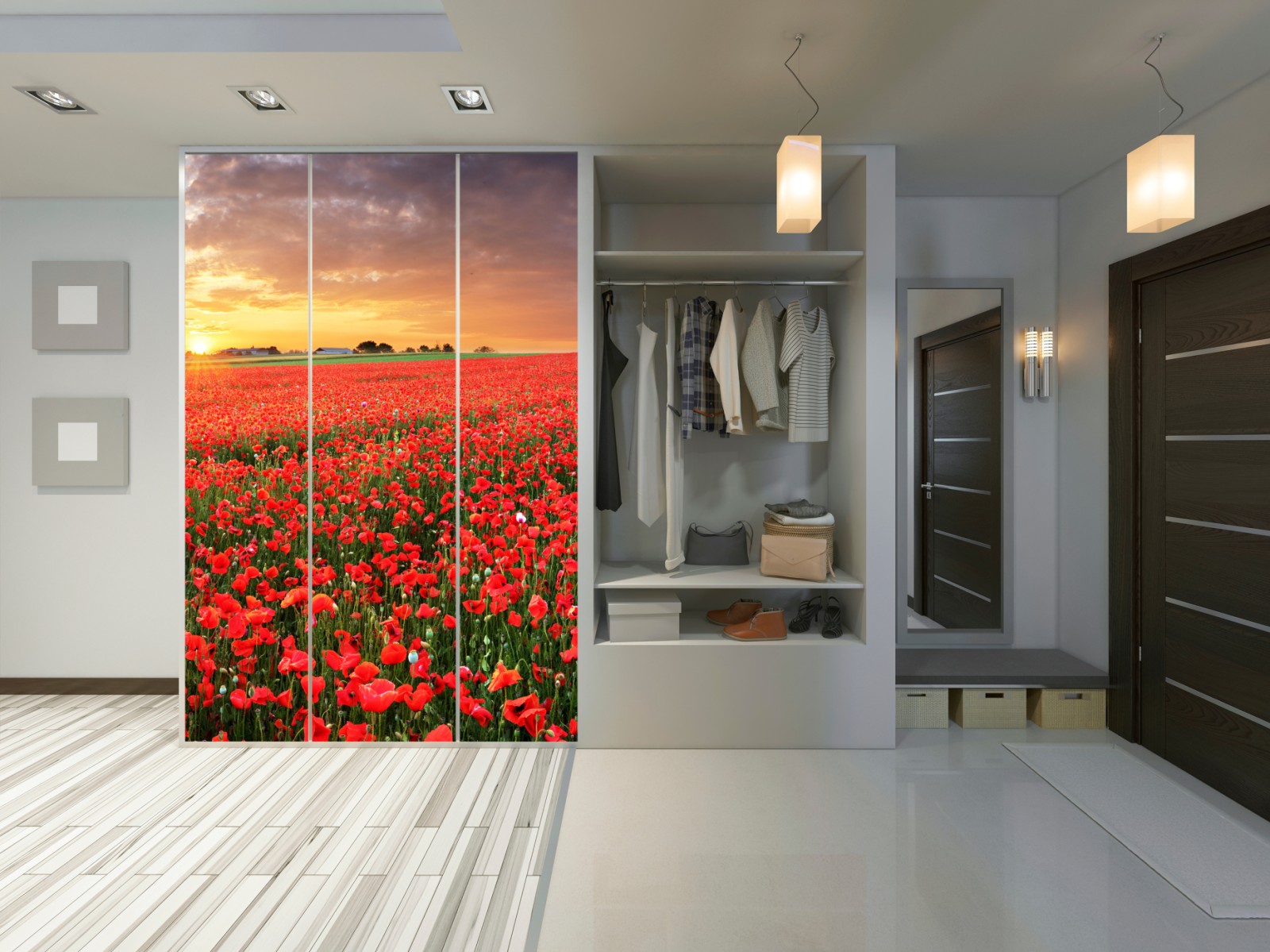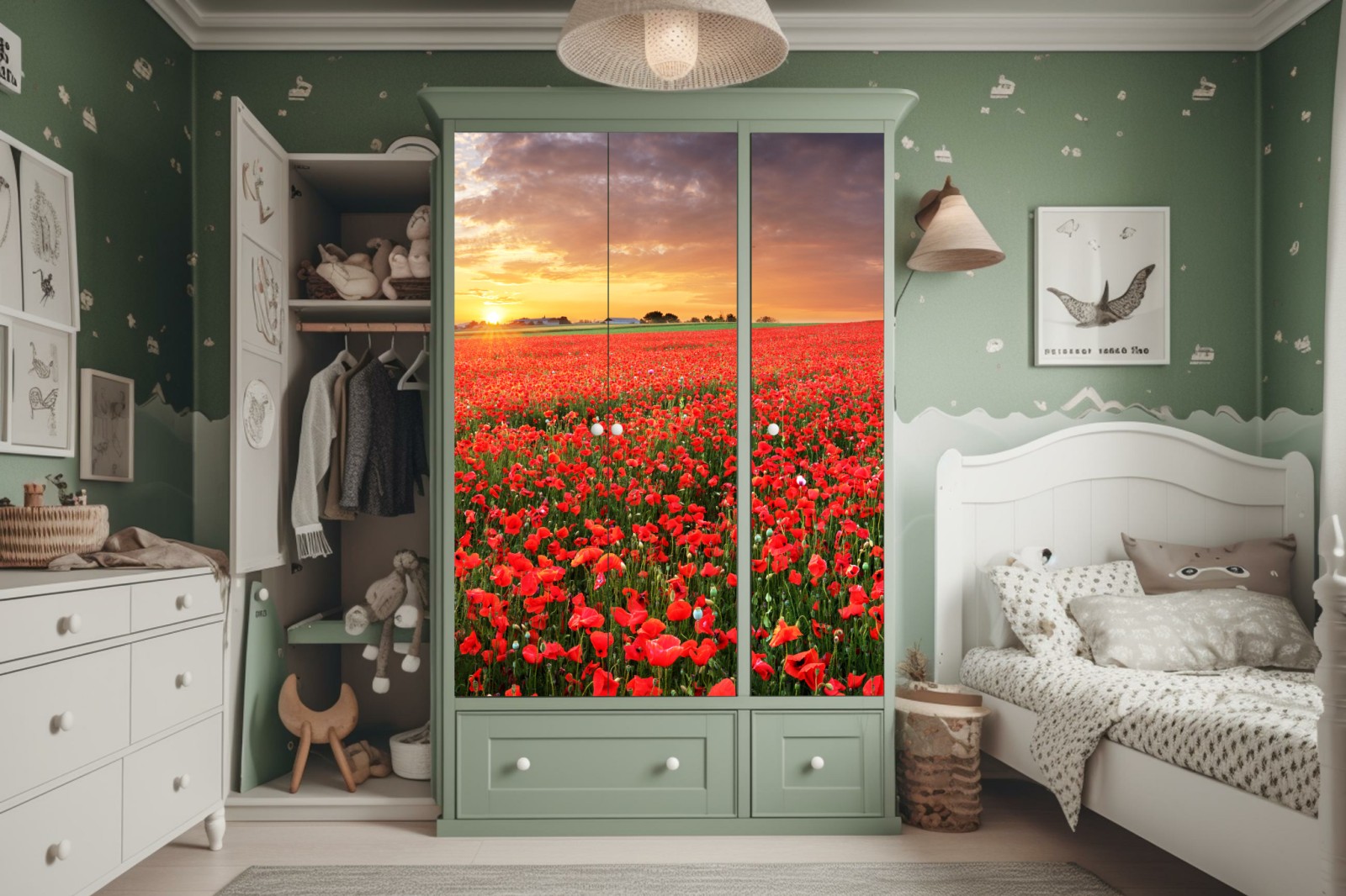 Schrankaufkleber Mohnfeld im sonnenuntergang