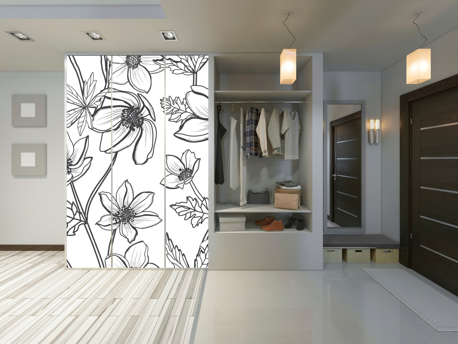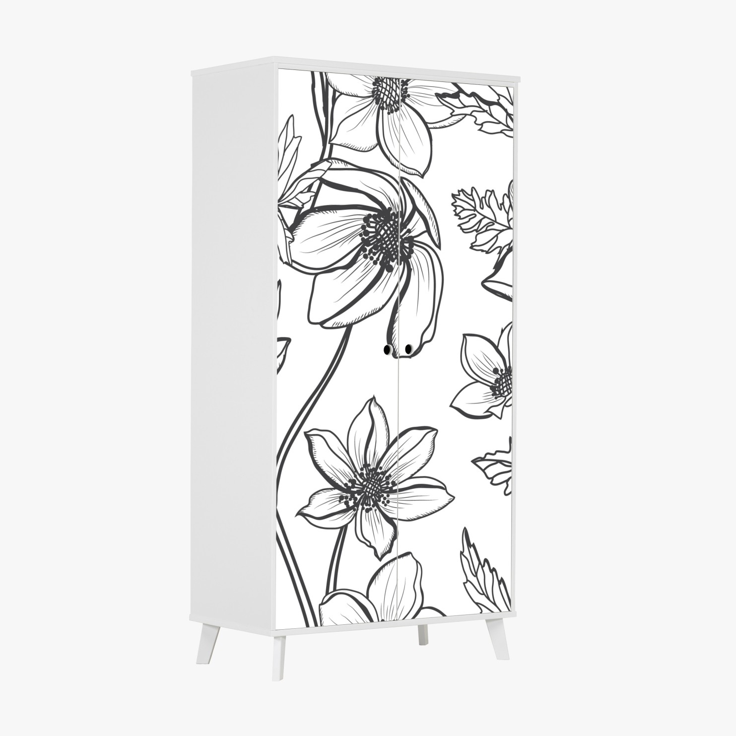 Schrankaufkleber Botanische linienzeichnung mit blumen