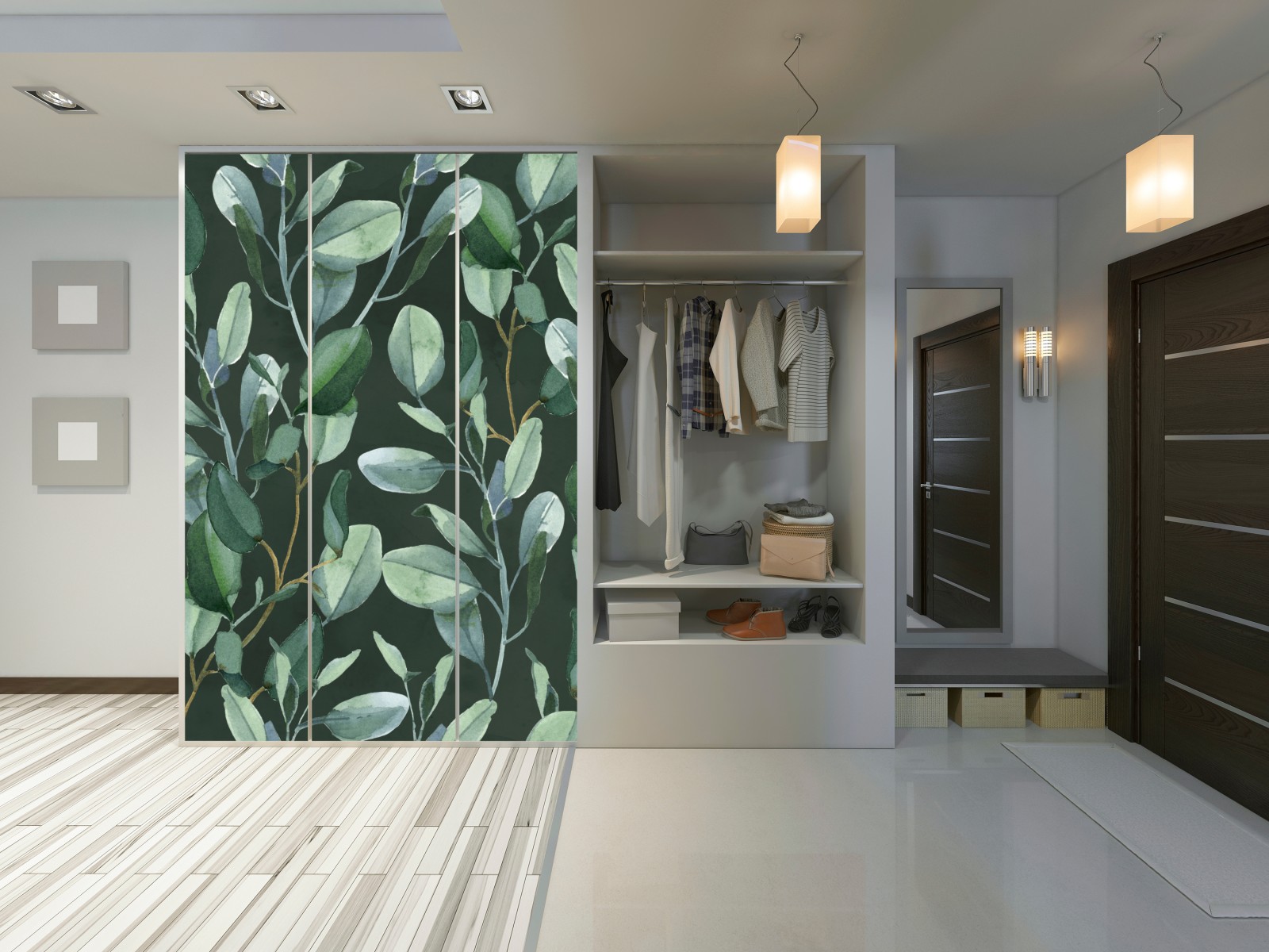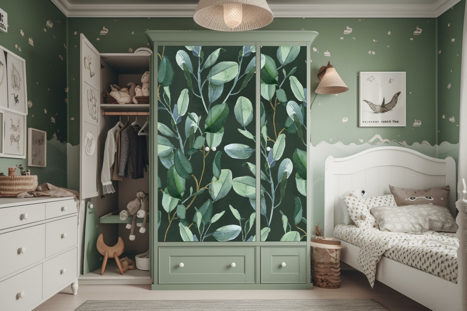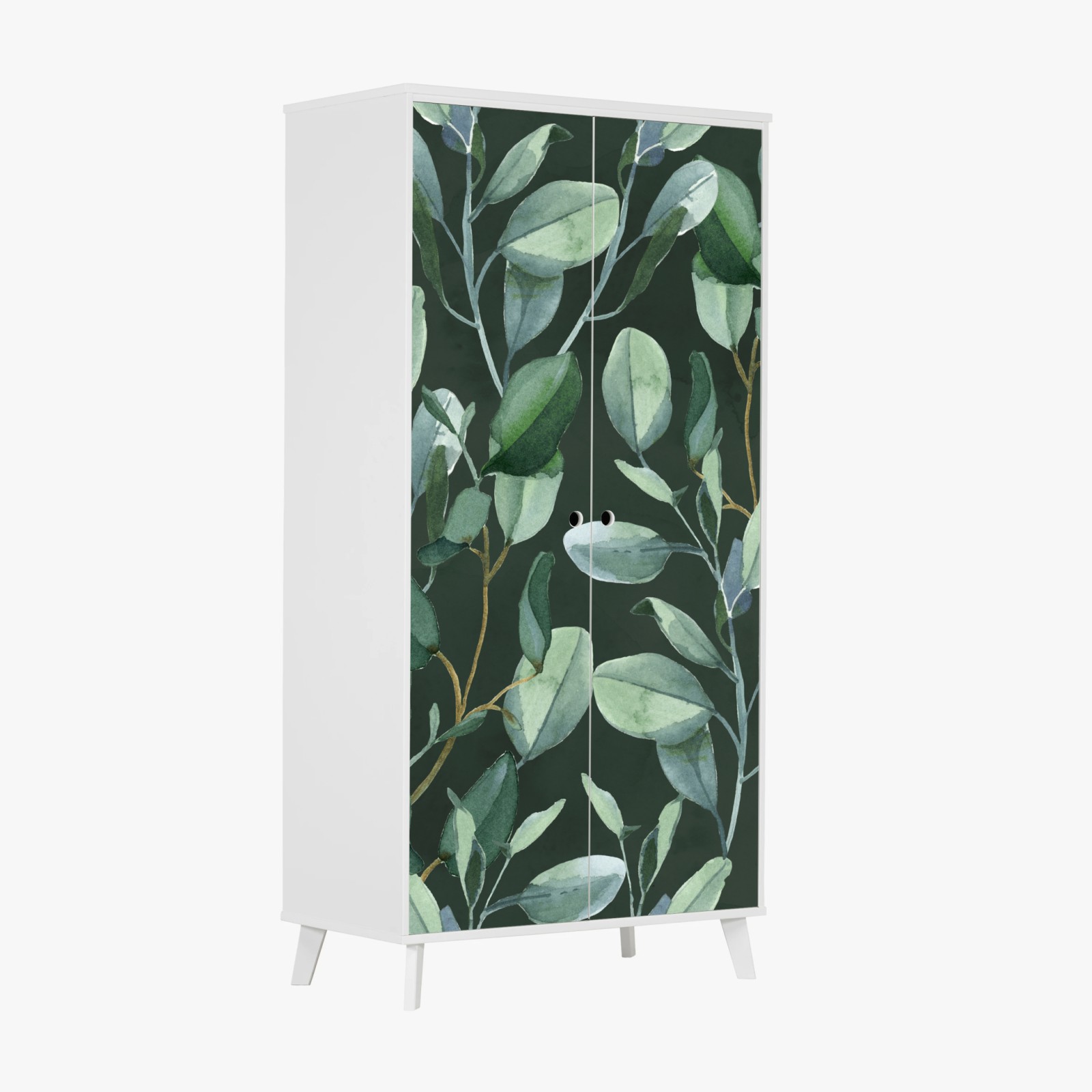 Schrankaufkleber Aquarell eukalyptusblätter muster auf dunkelgrünem hintergrund