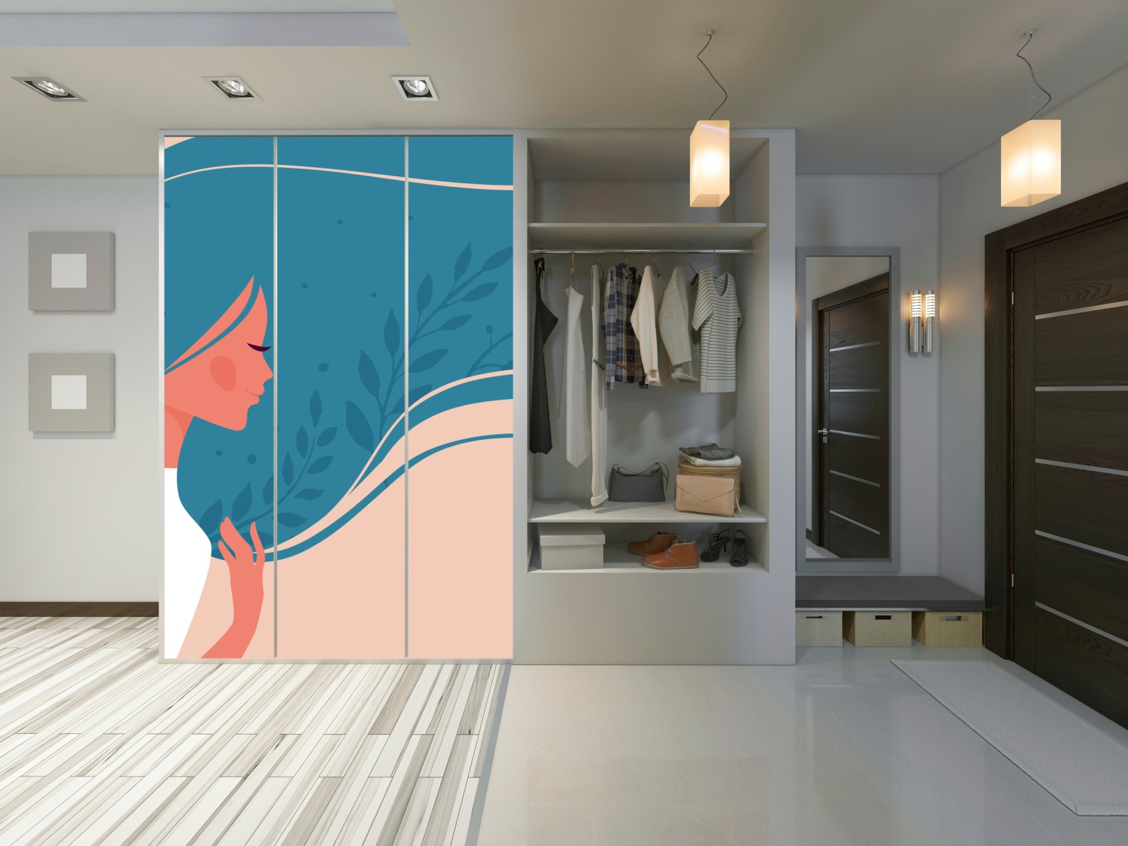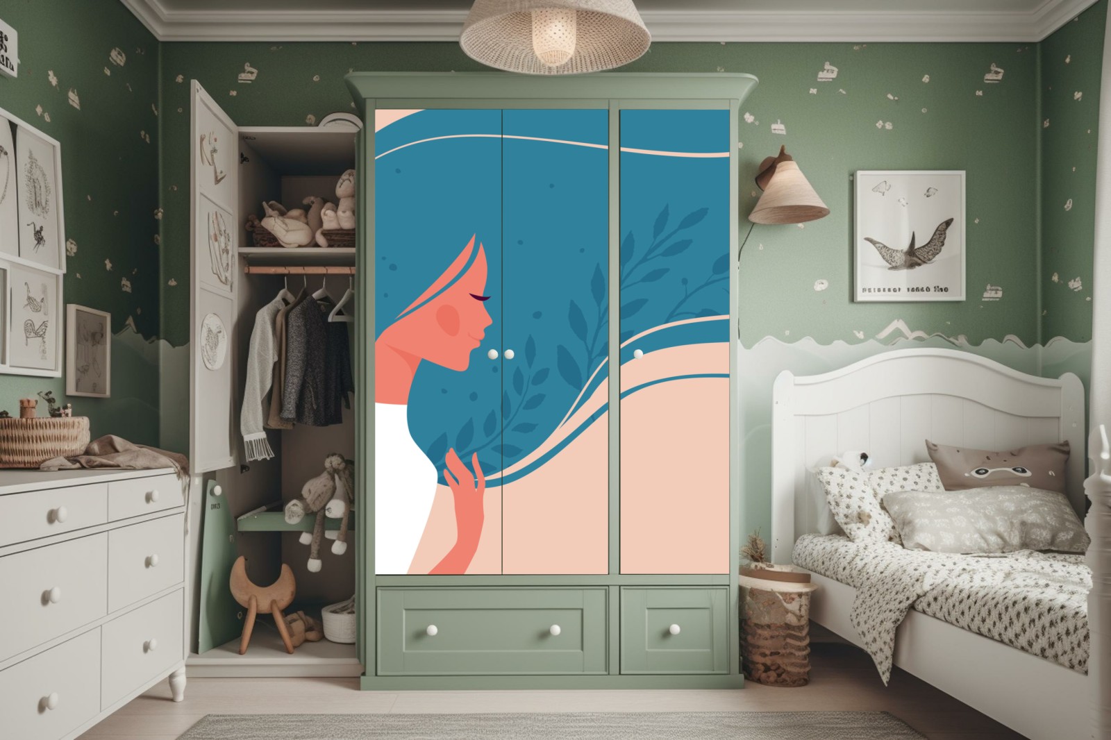 Schrankaufkleber Sanftes blumiges profil mit fließendem haar