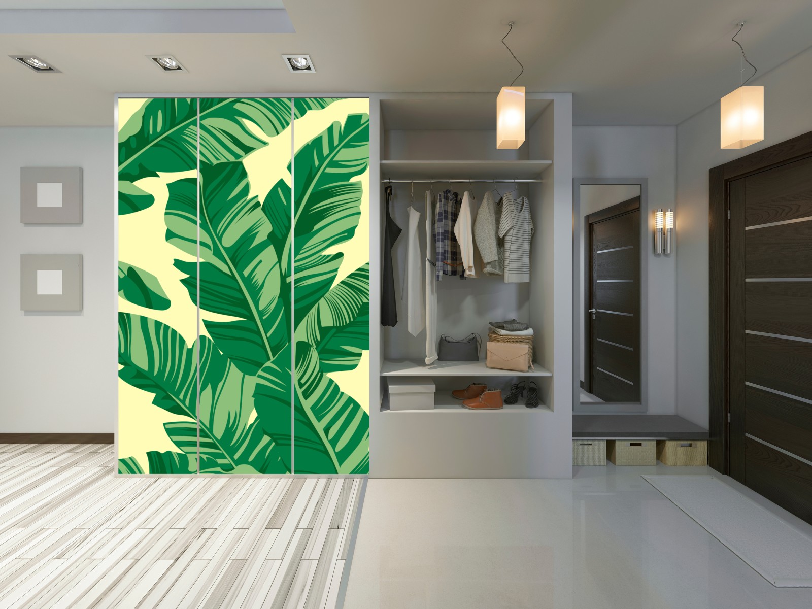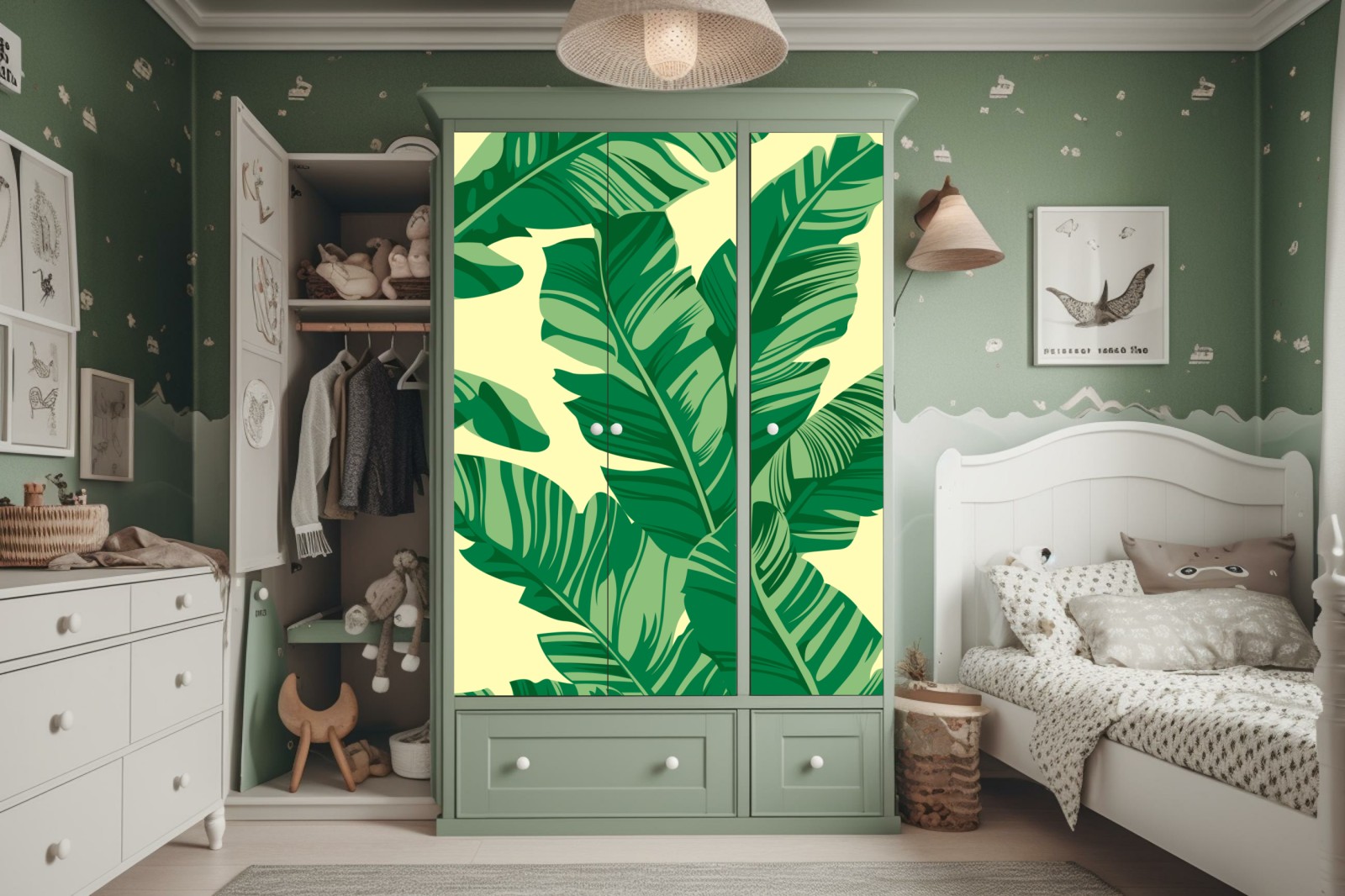 Schrankaufkleber Tropisches muster mit bananenblättern