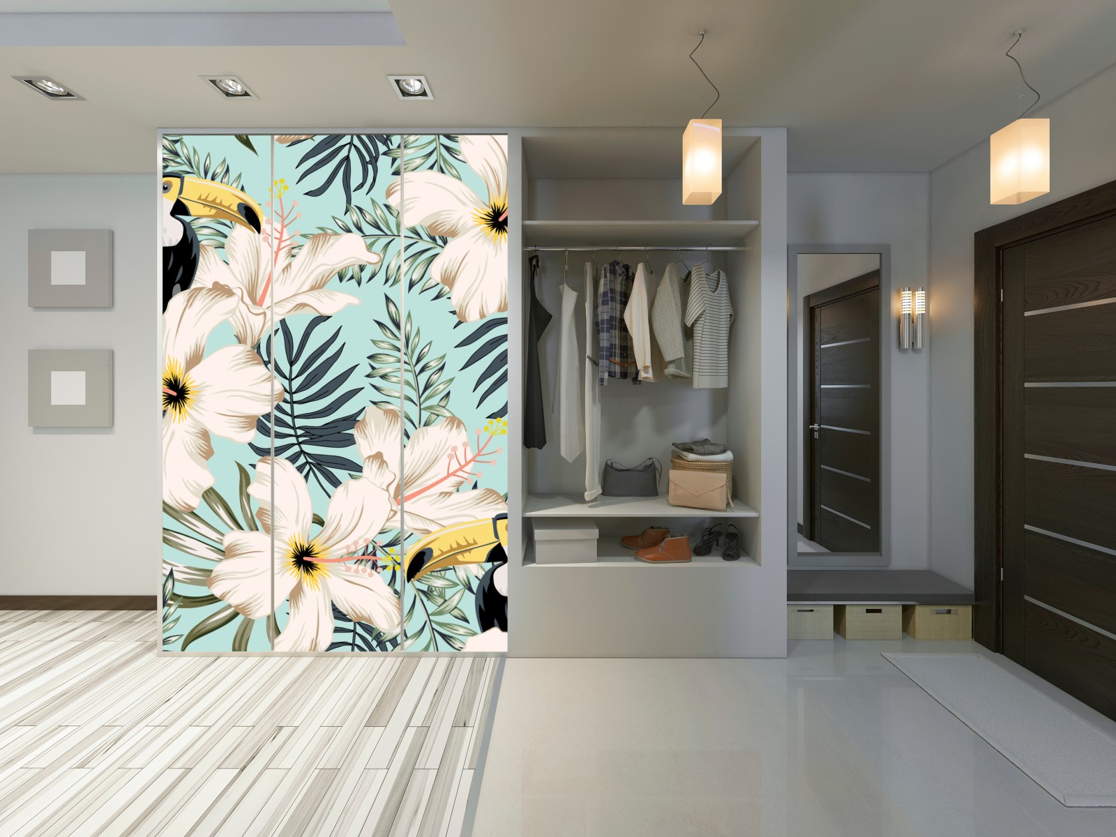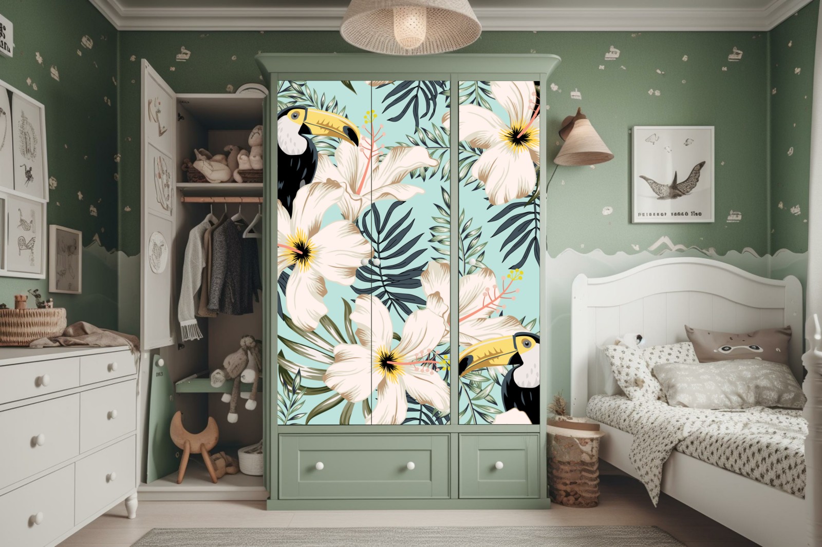 Schrankaufkleber Tropisches muster mit tukan und blumen