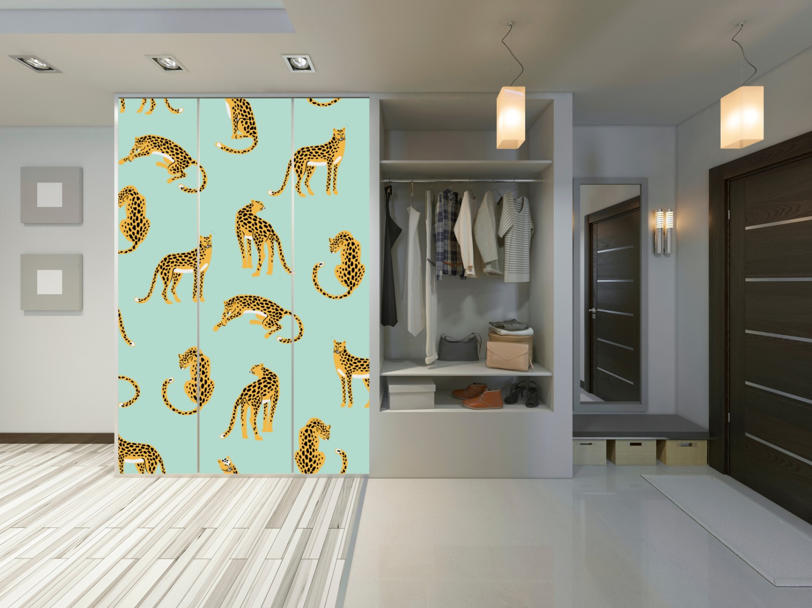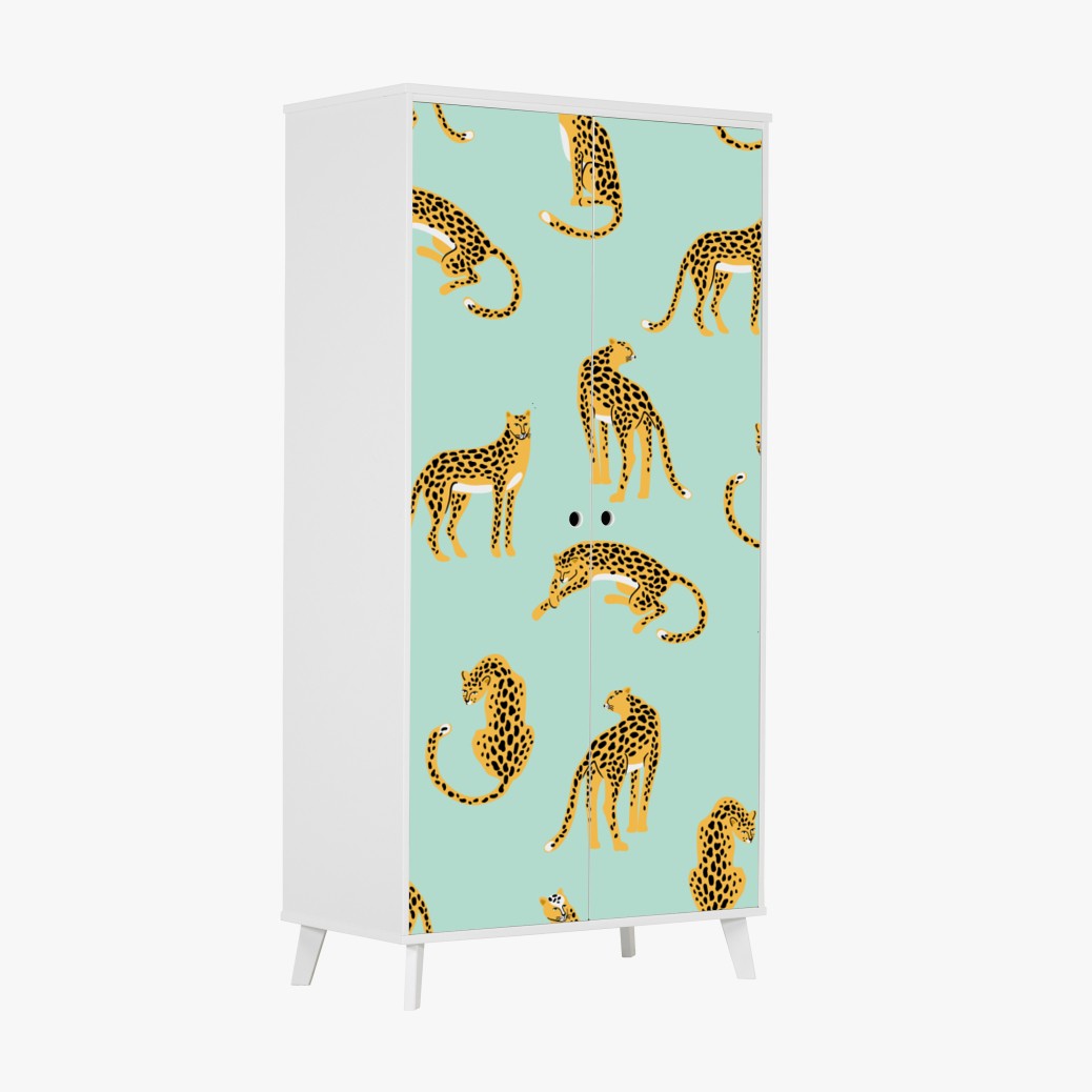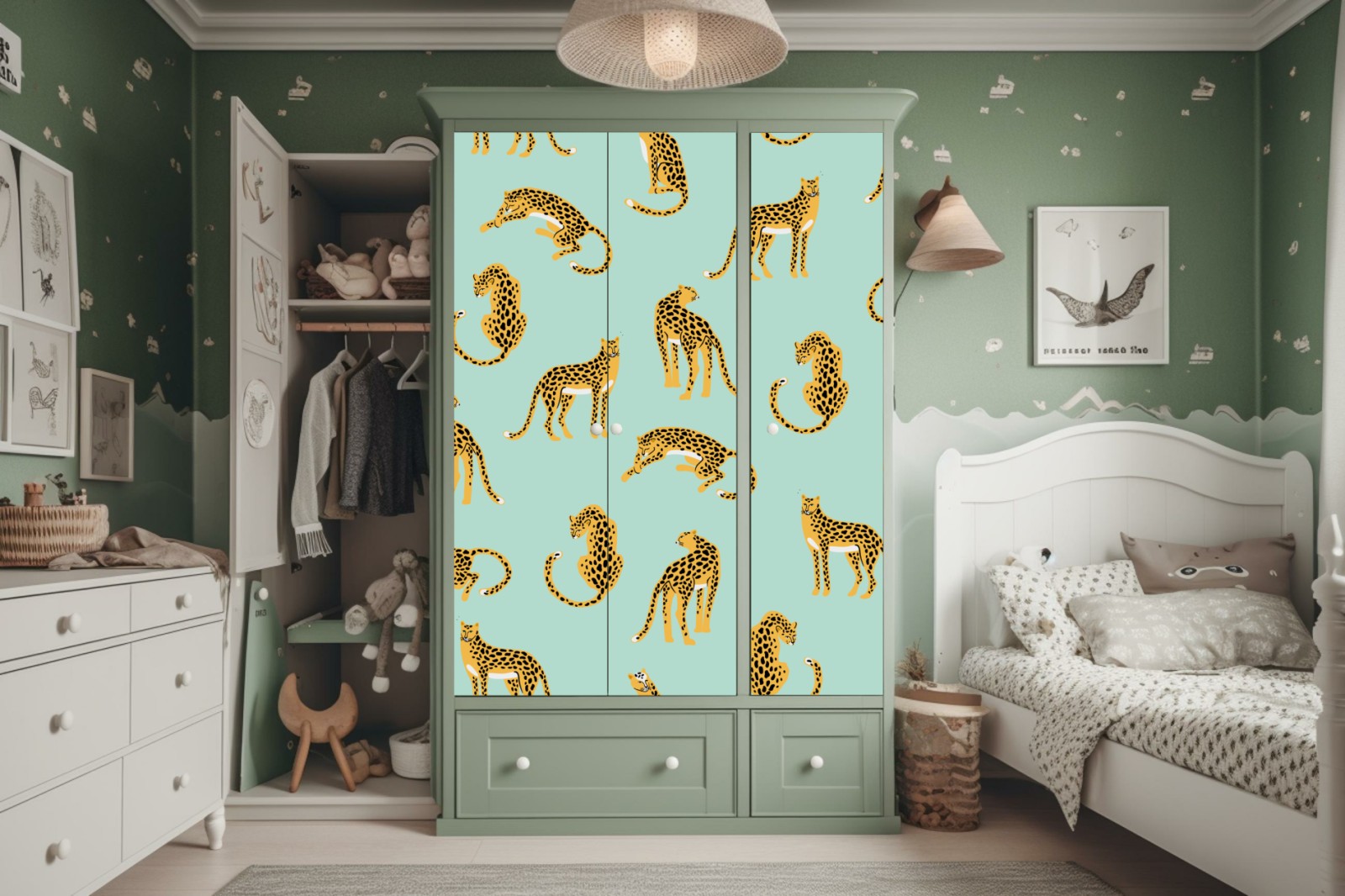 Schrankaufkleber Verspieltes gepardenmuster auf türkisgrund