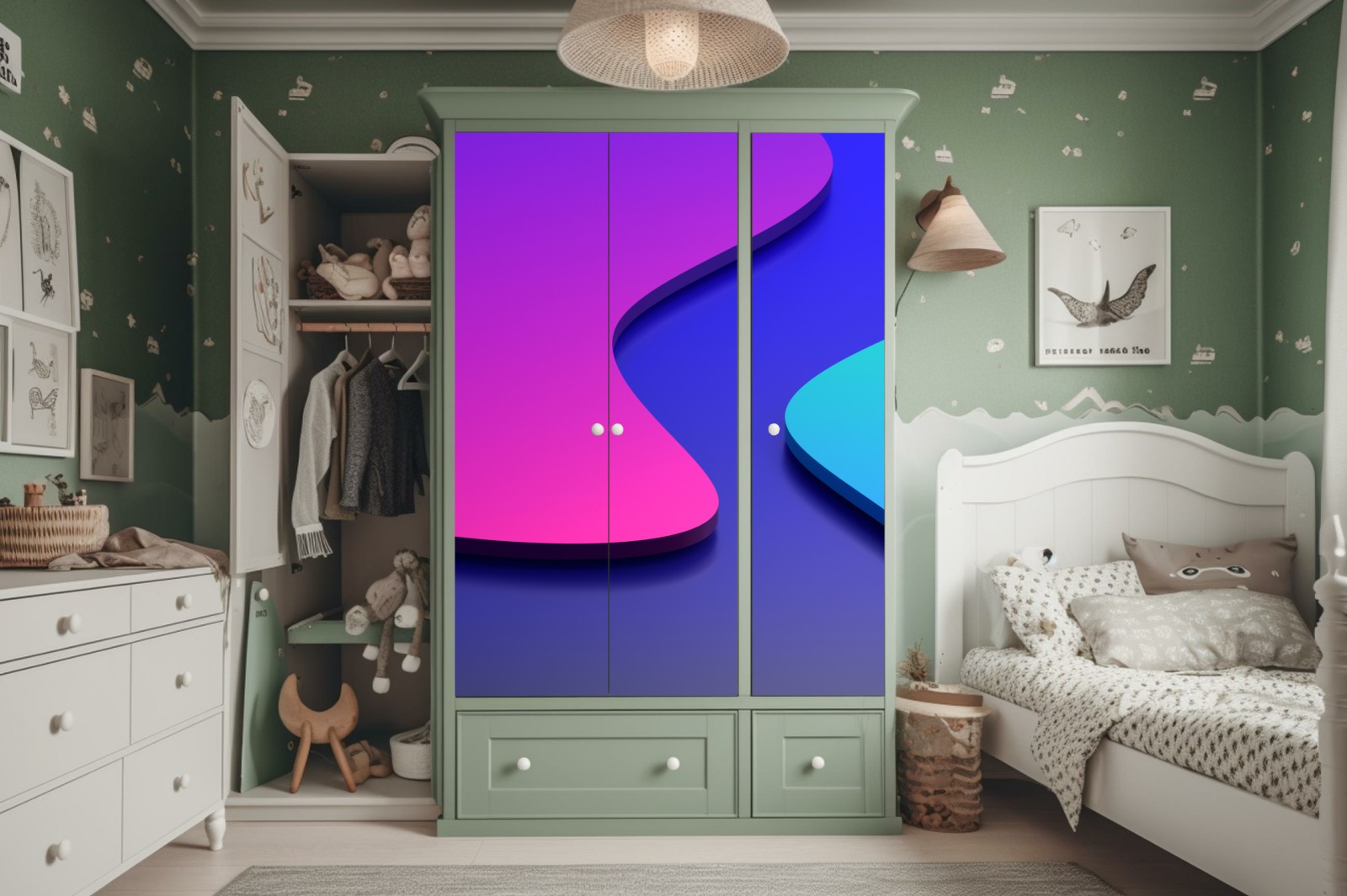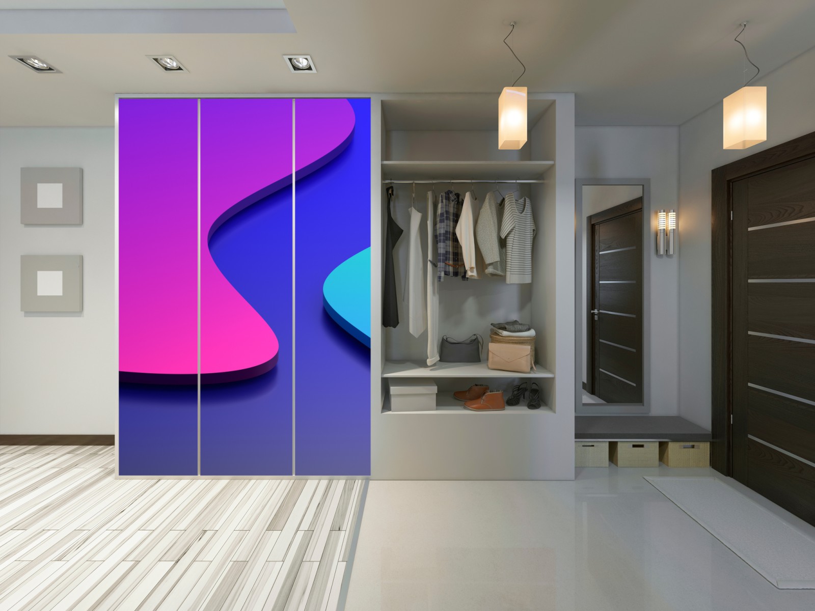 Schrankaufkleber Leuchtende lila-blaue abstrakte 3d-formen