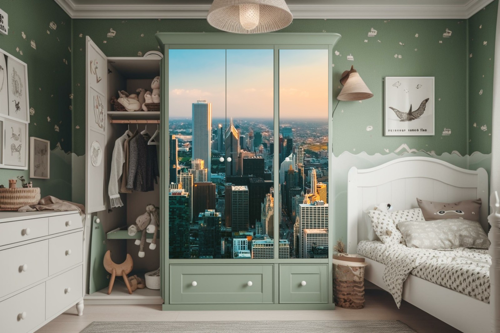 Schrankaufkleber Chicago skyline bei sonnenuntergang