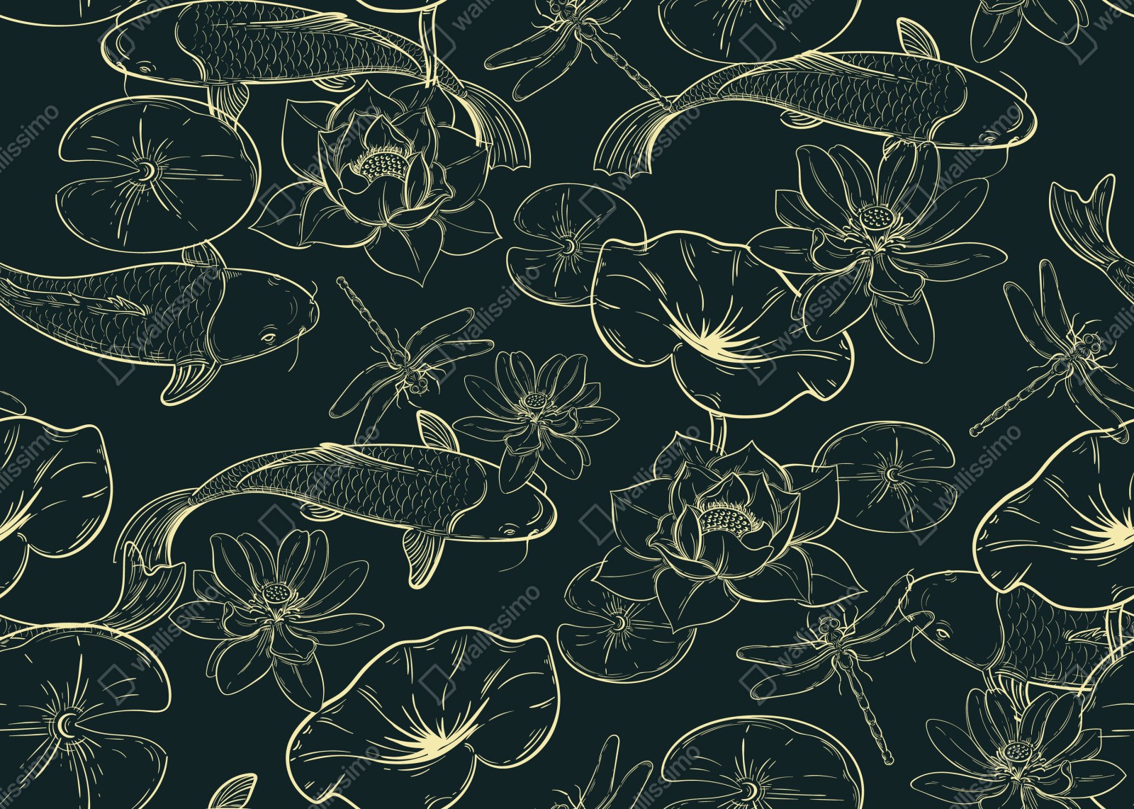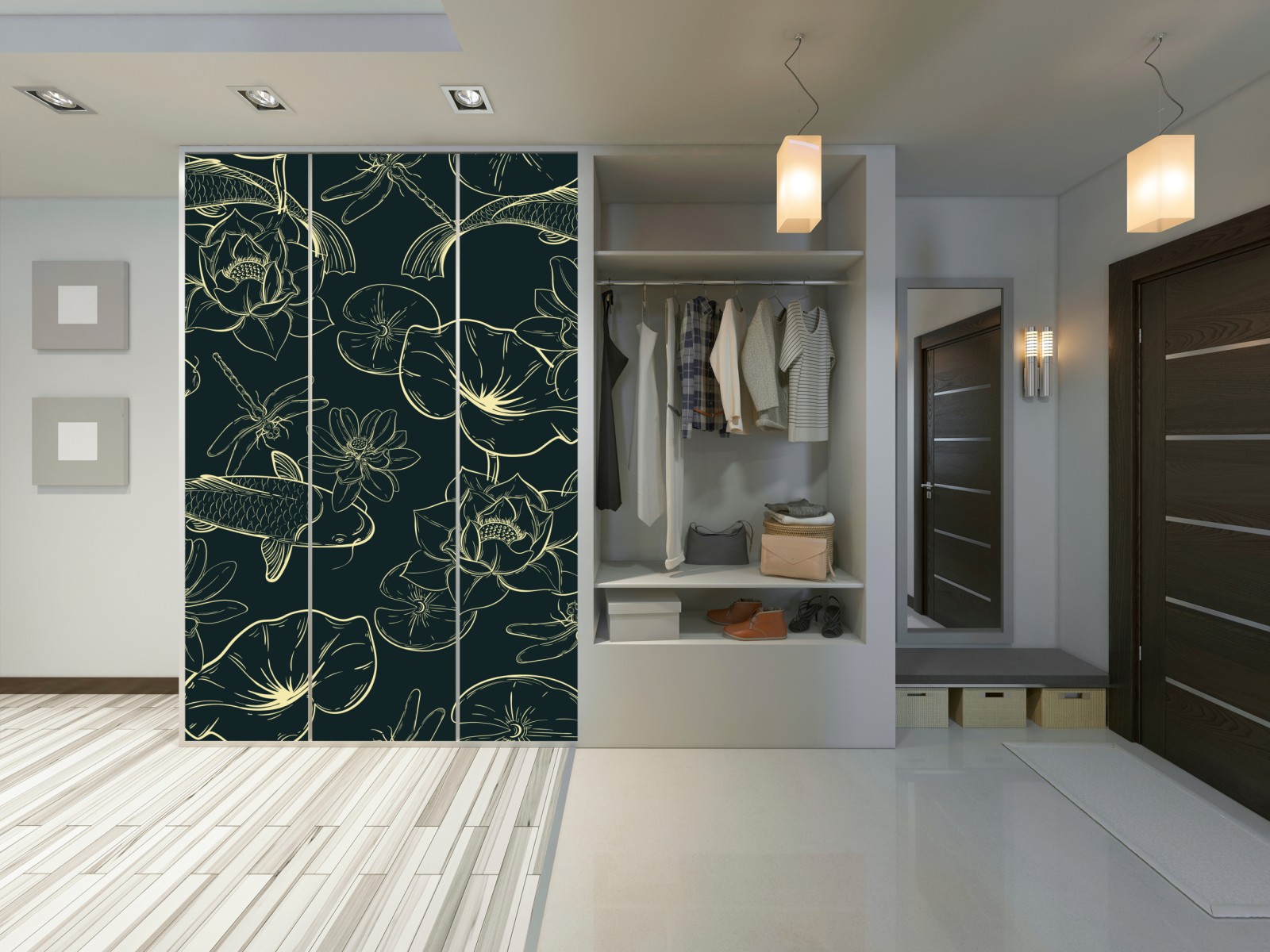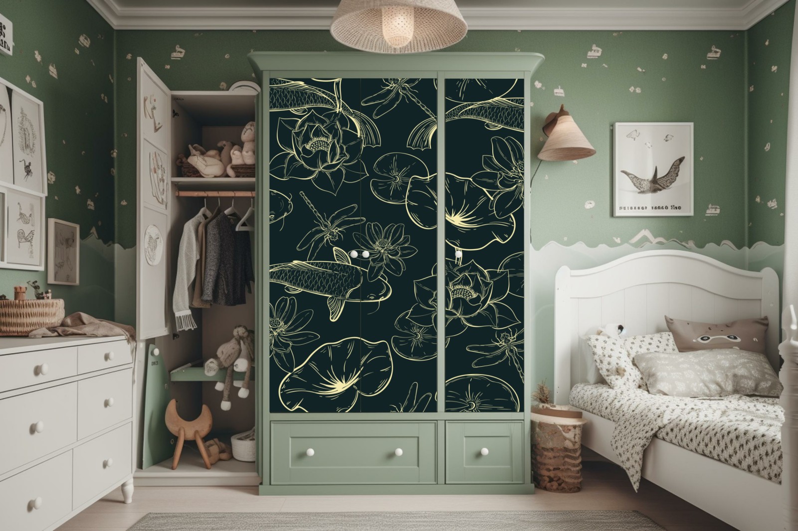 Schrankaufkleber Handgezeichnetes koi- und lotusmuster