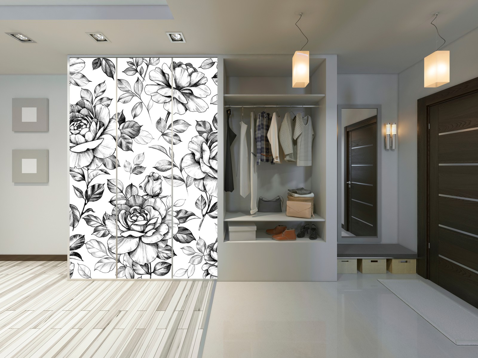 Schrankaufkleber Handgezeichnetes rosenmuster