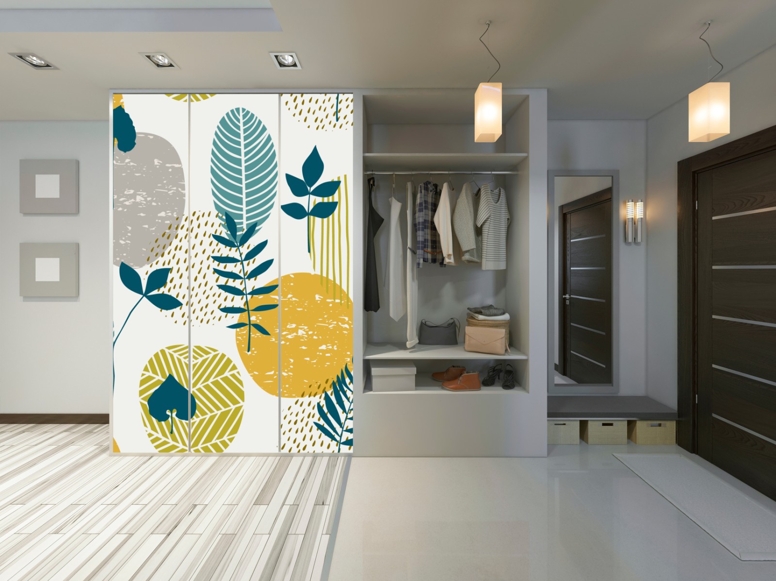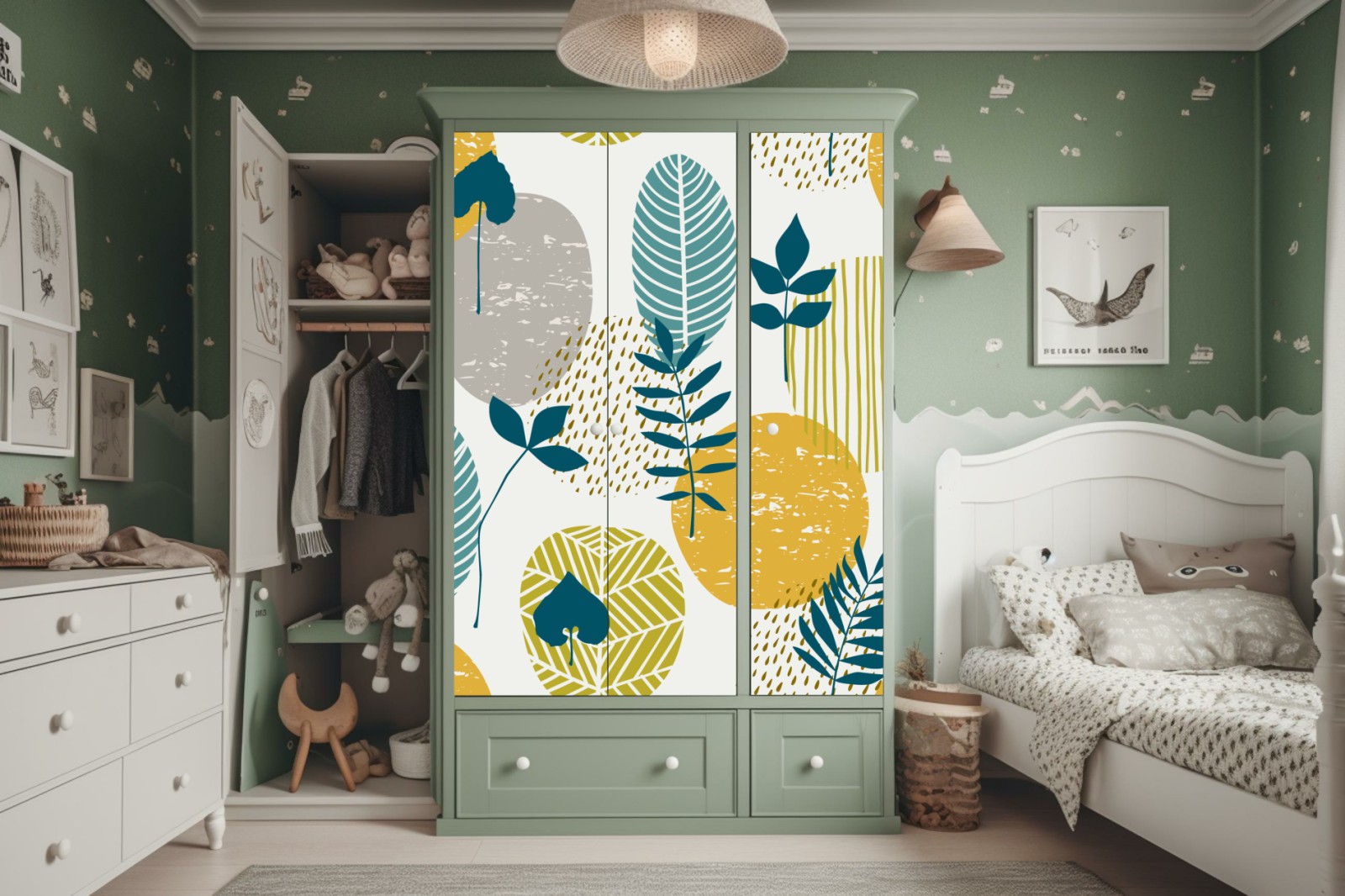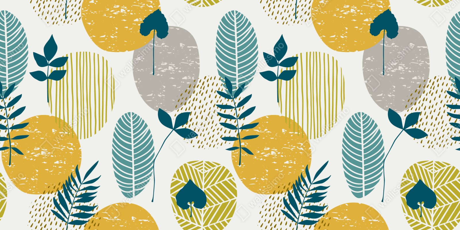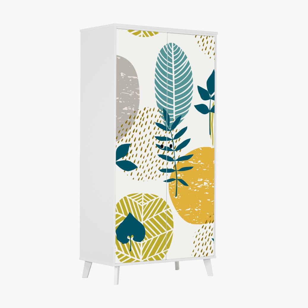 Schrankaufkleber Türkis-senfgelbes botanisches muster