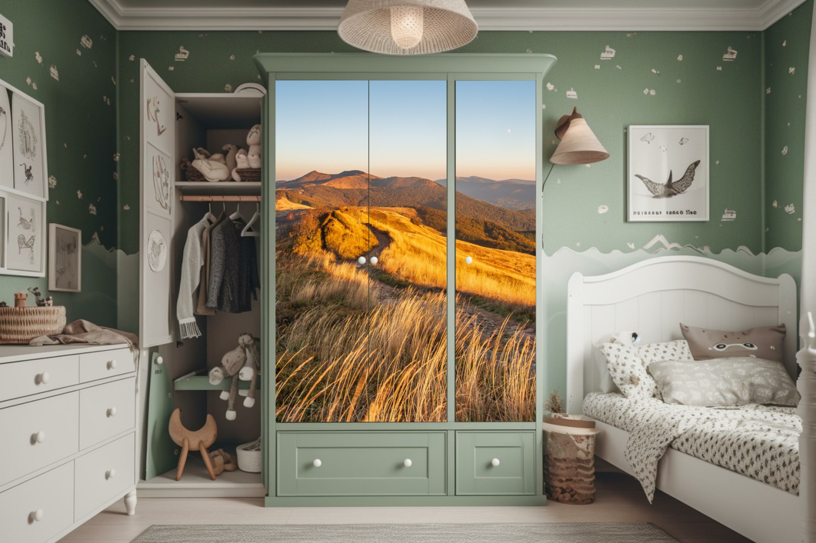 Schrankaufkleber Goldener bergkamm im sonnenuntergang