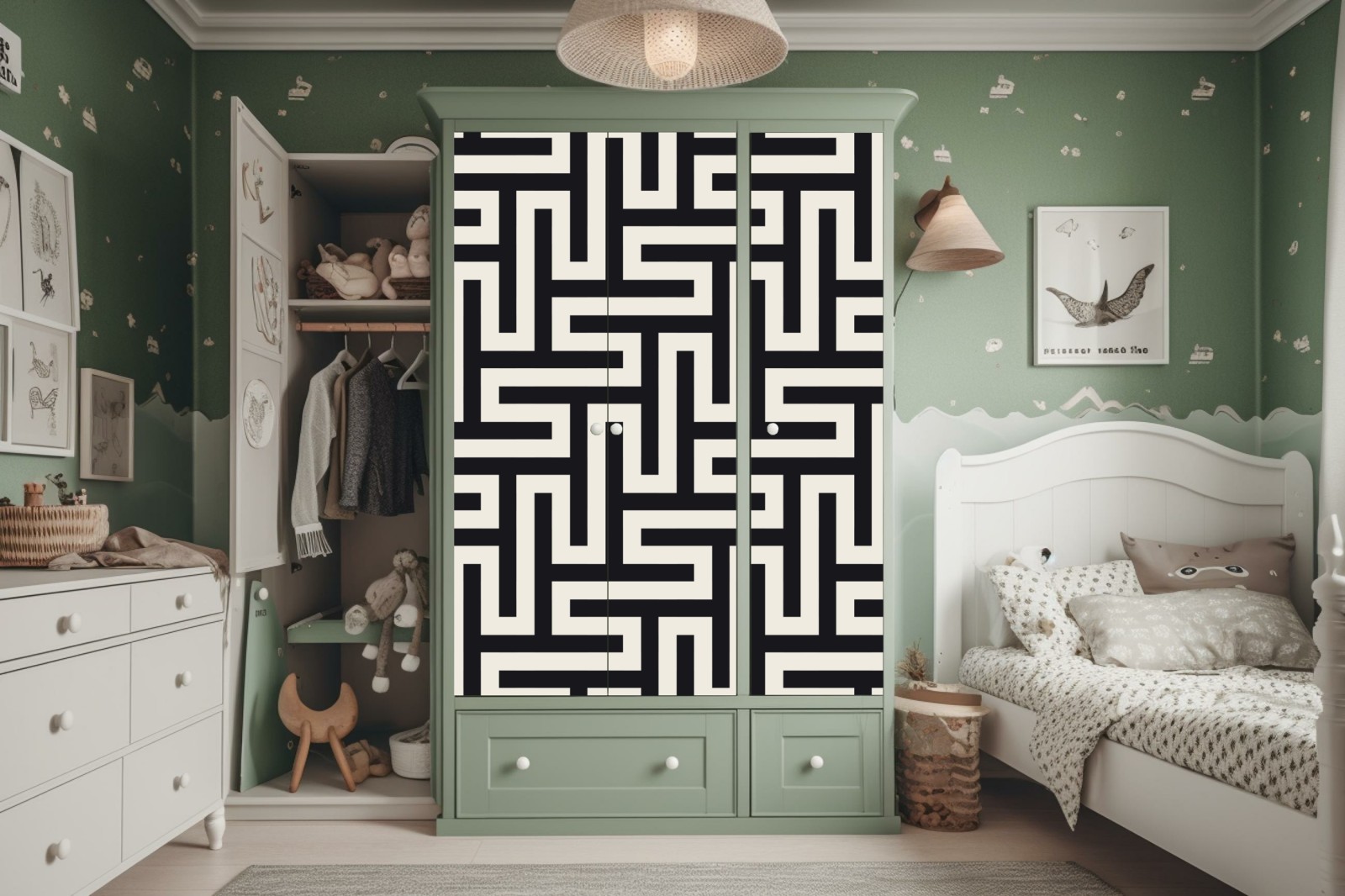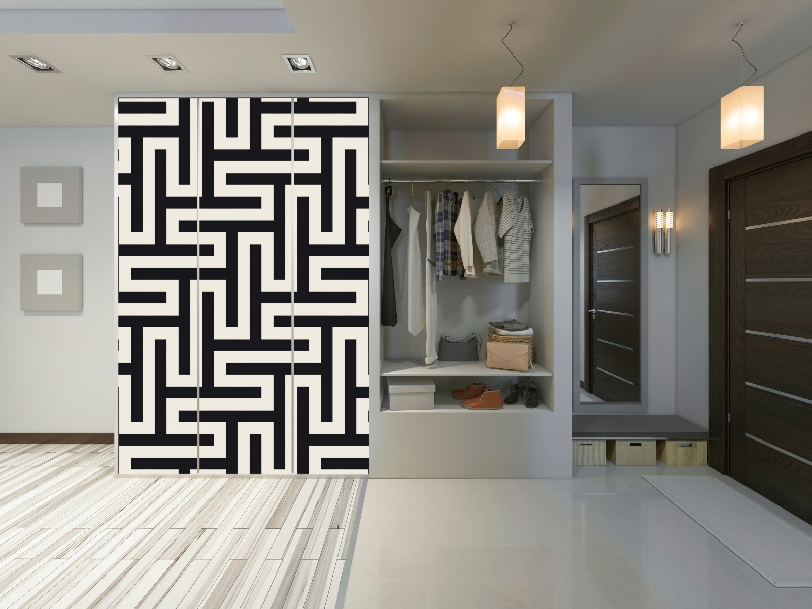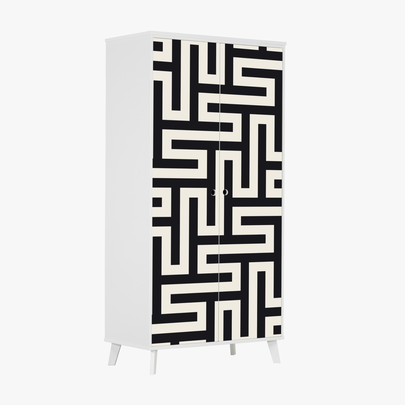 Schrankaufkleber Geometrisches labyrinthmuster in beige und schwarz