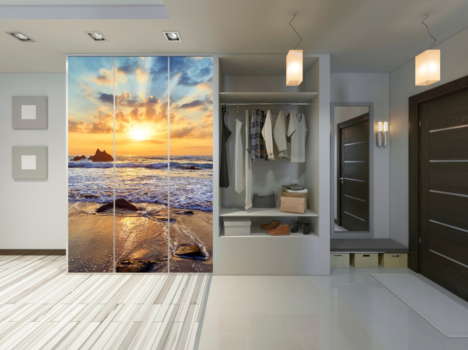 Schrankaufkleber Sonnenuntergang an der felsigen küste