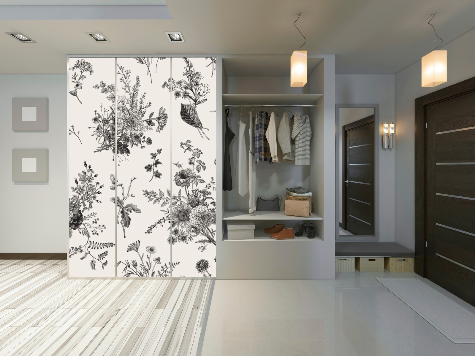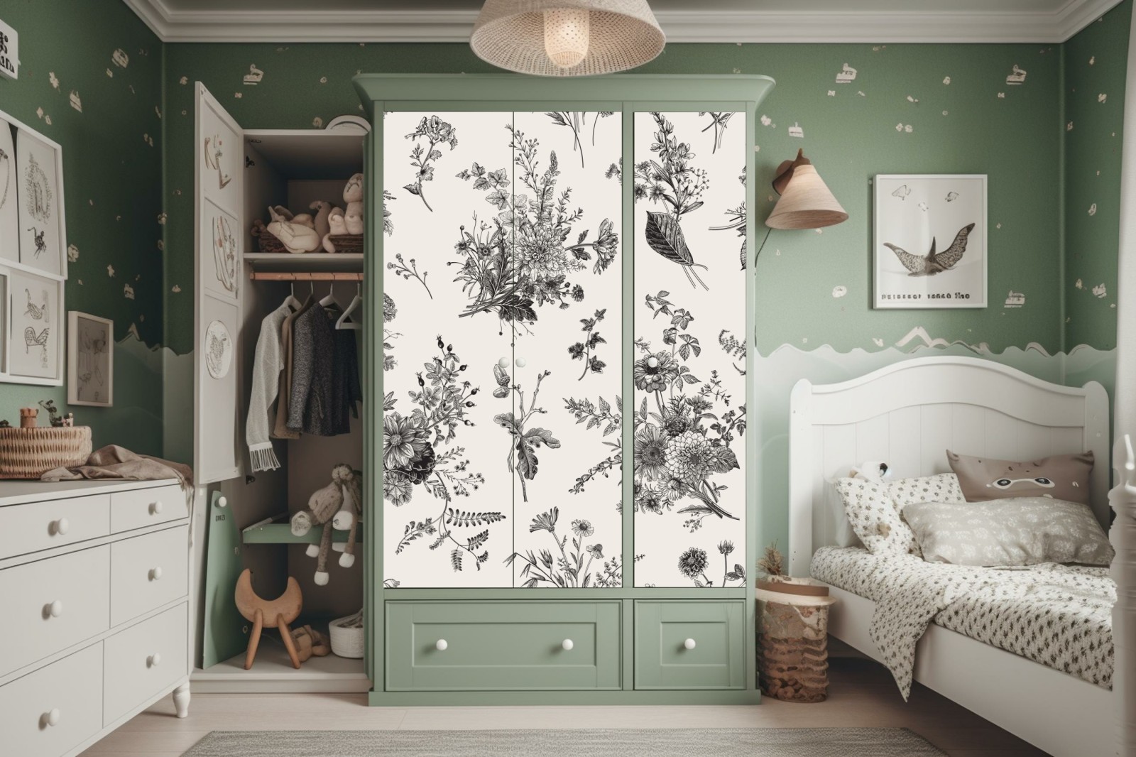 Schrankaufkleber Klassisches schwarzweißes blumenmuster