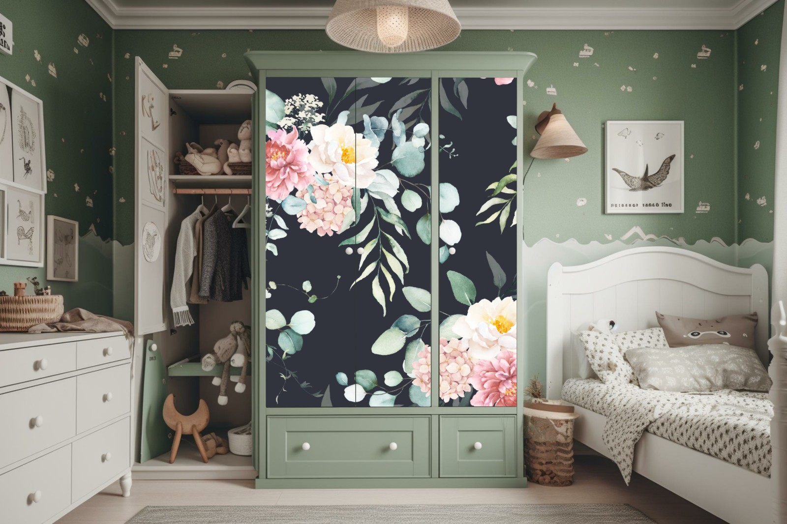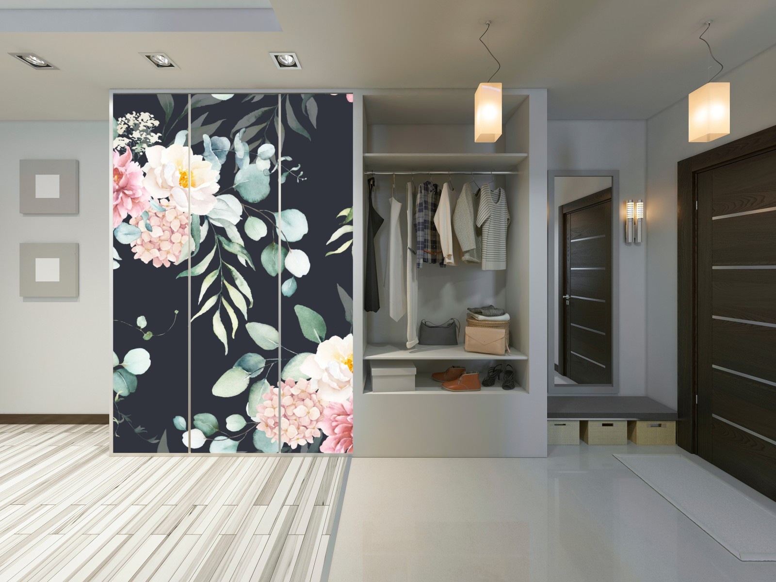 Schrankaufkleber Elegantes aquarell-blumenmuster auf dunklem hintergrund