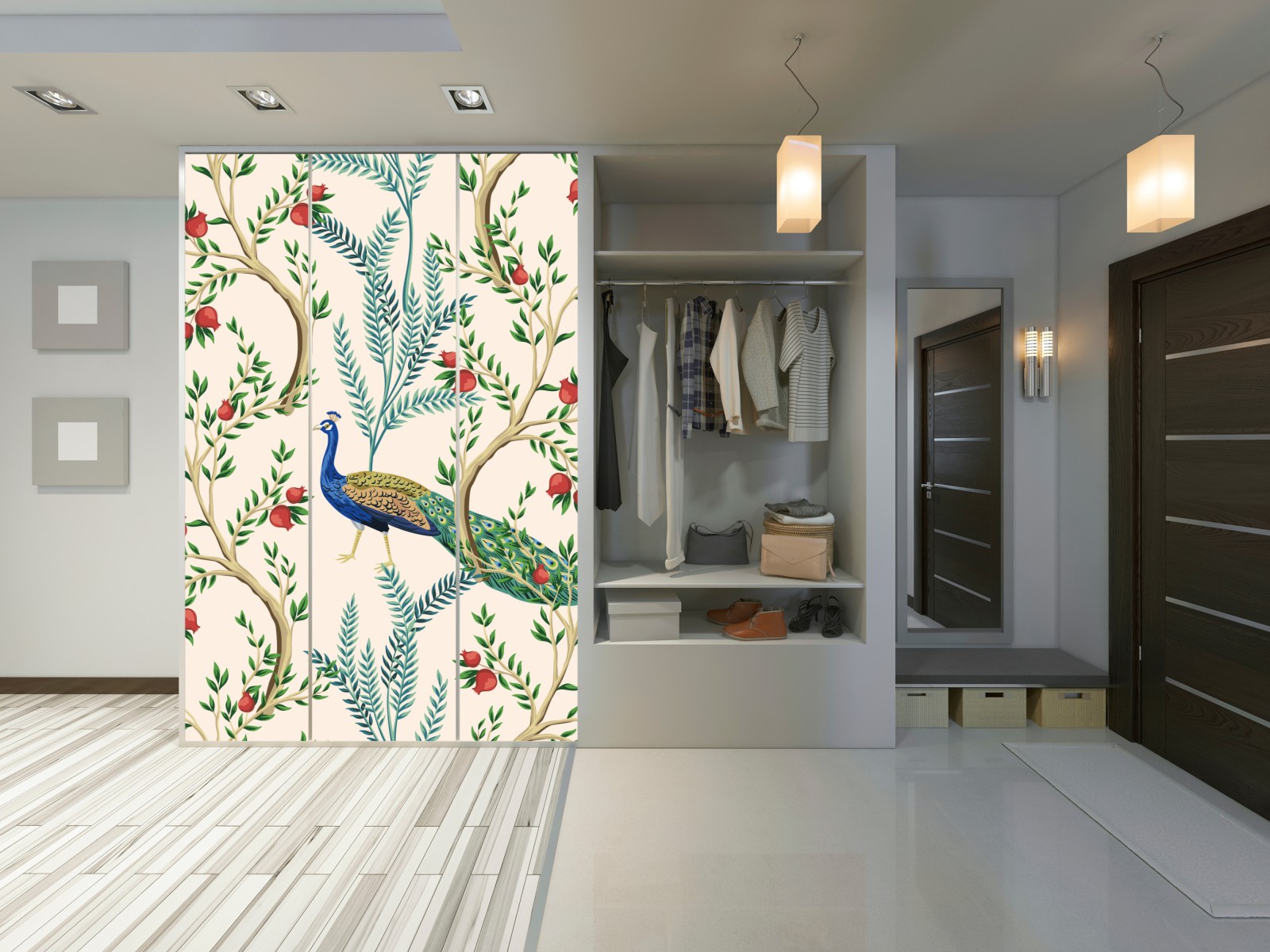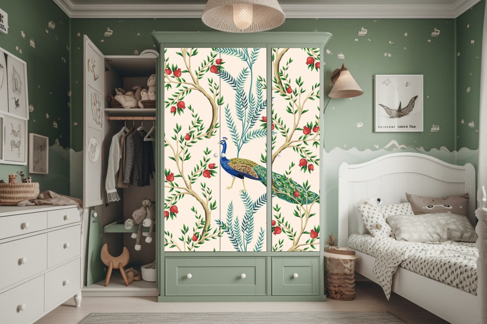 Schrankaufkleber Pfau zwischen granatästen