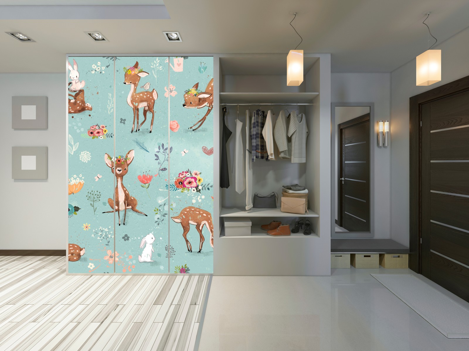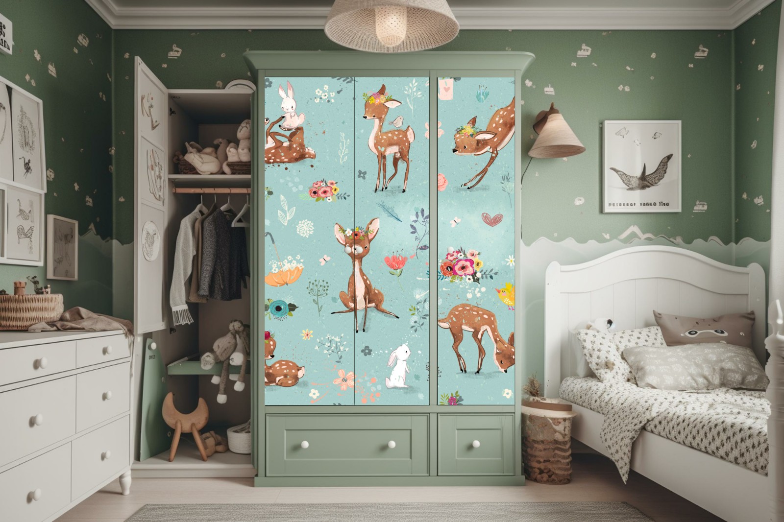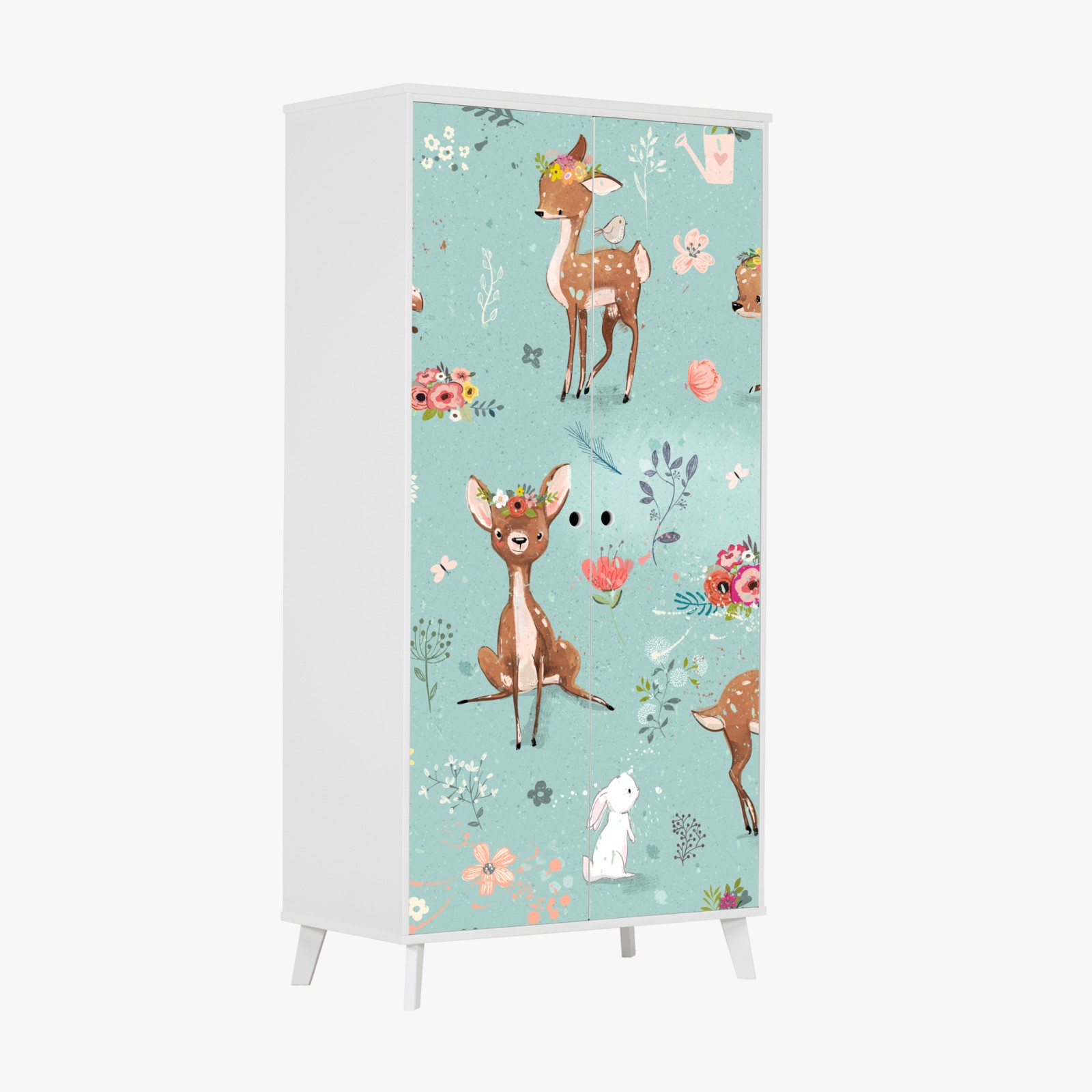 Schrankaufkleber Pastellmuster mit rehkitzen und hasen