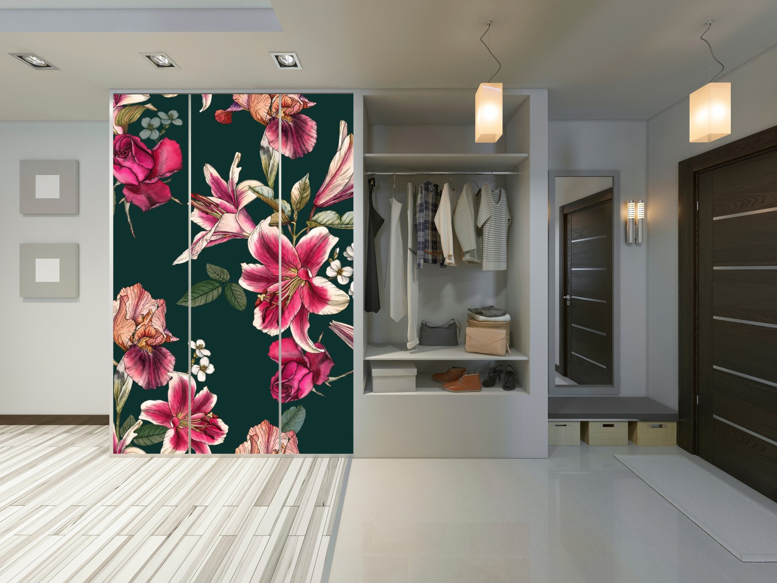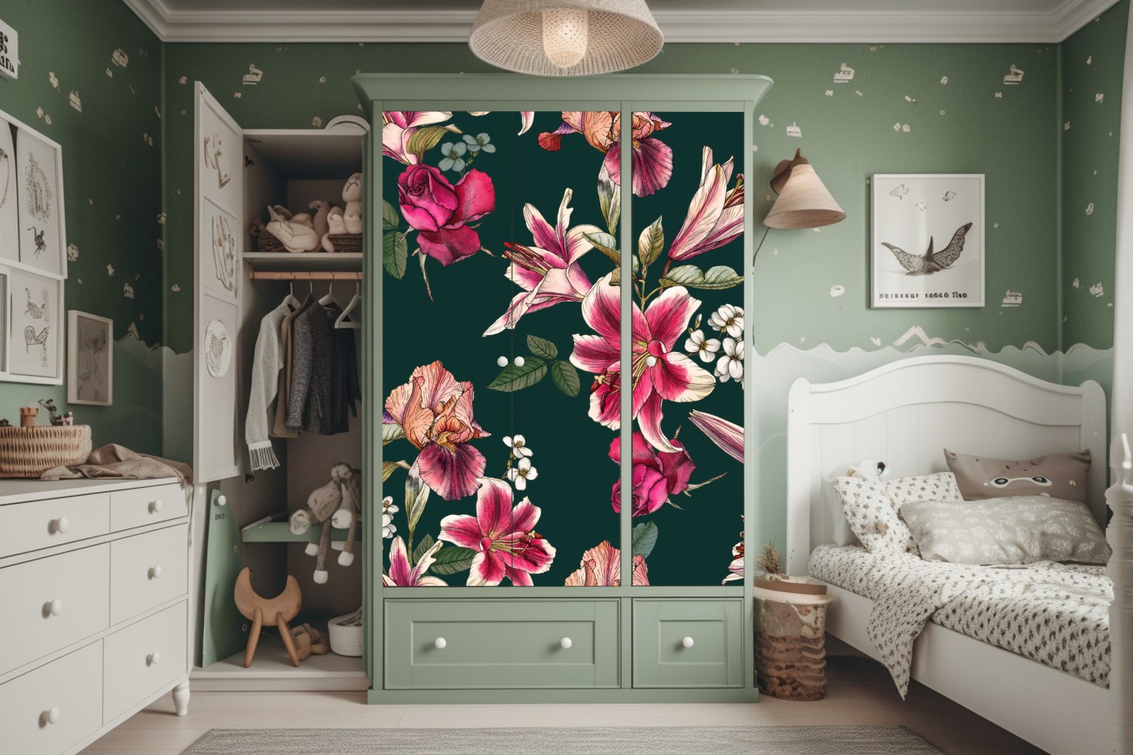 Schrankaufkleber Vintage botanisches floralmuster auf tiefgrün