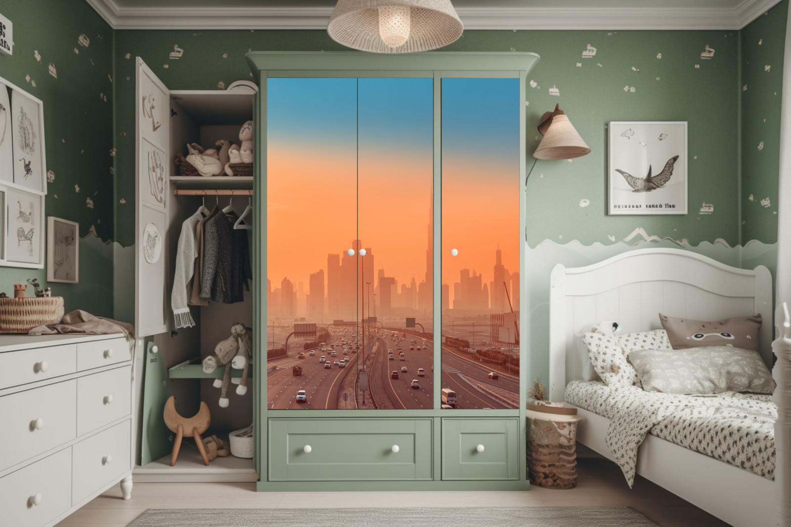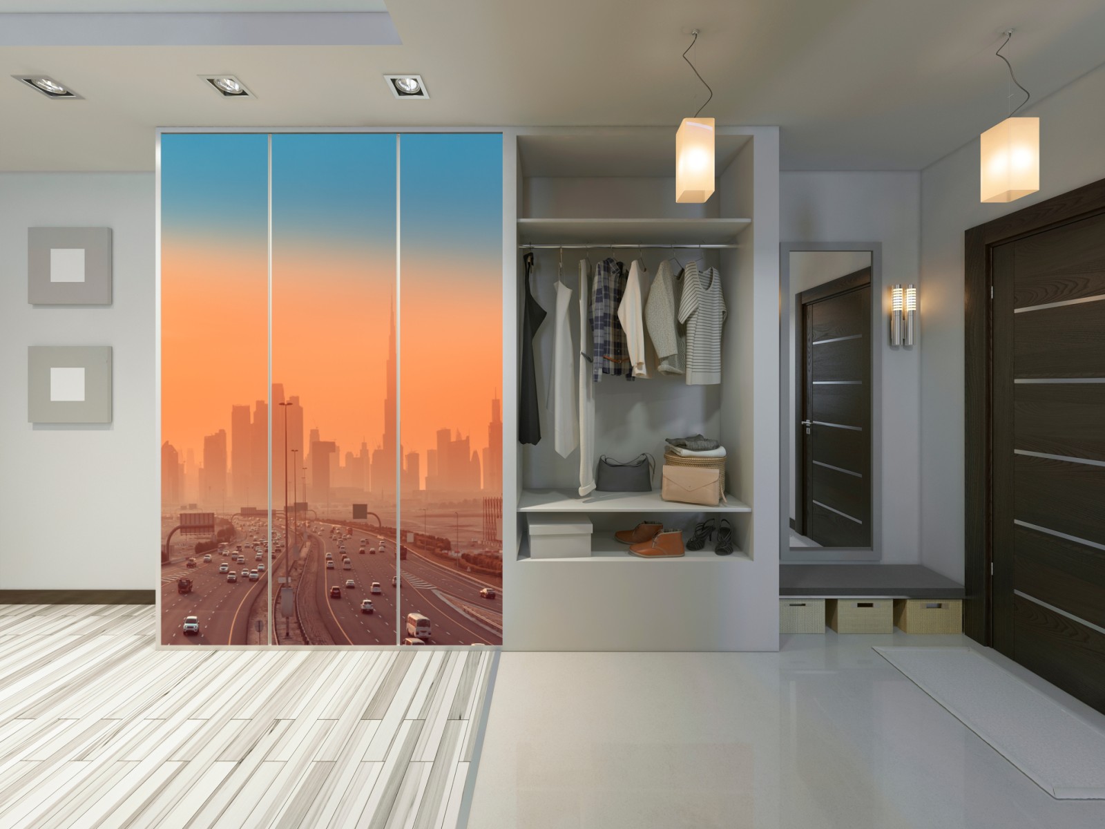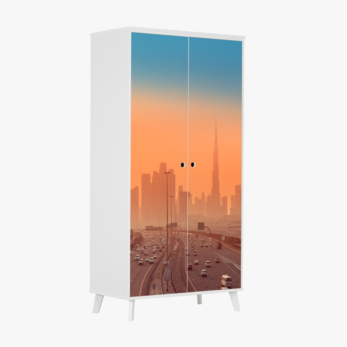 Schrankaufkleber Dubai skyline bei sonnenaufgang