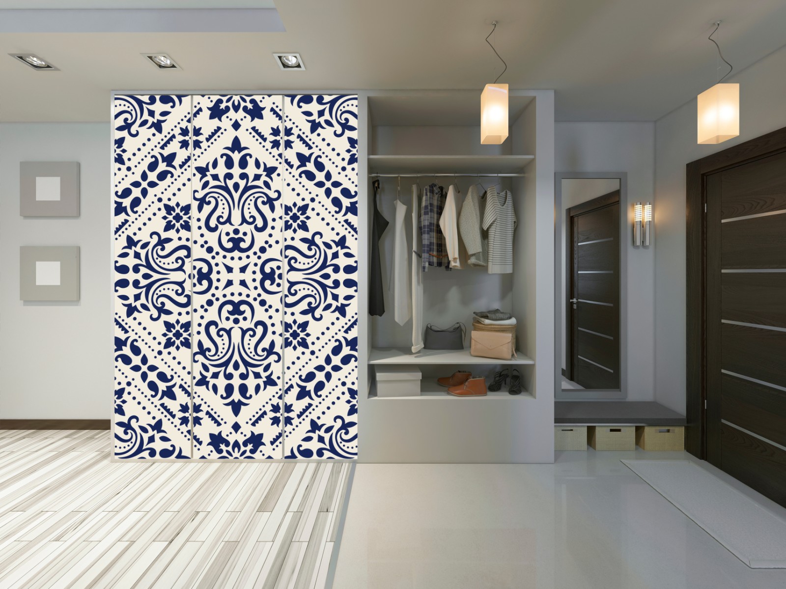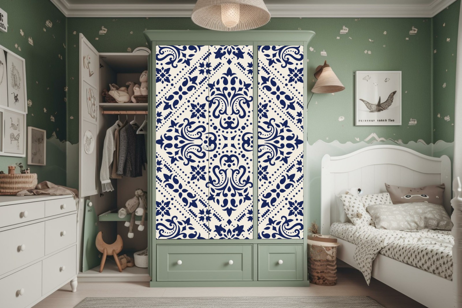 Schrankaufkleber Marineblaues damast-fliesenmuster