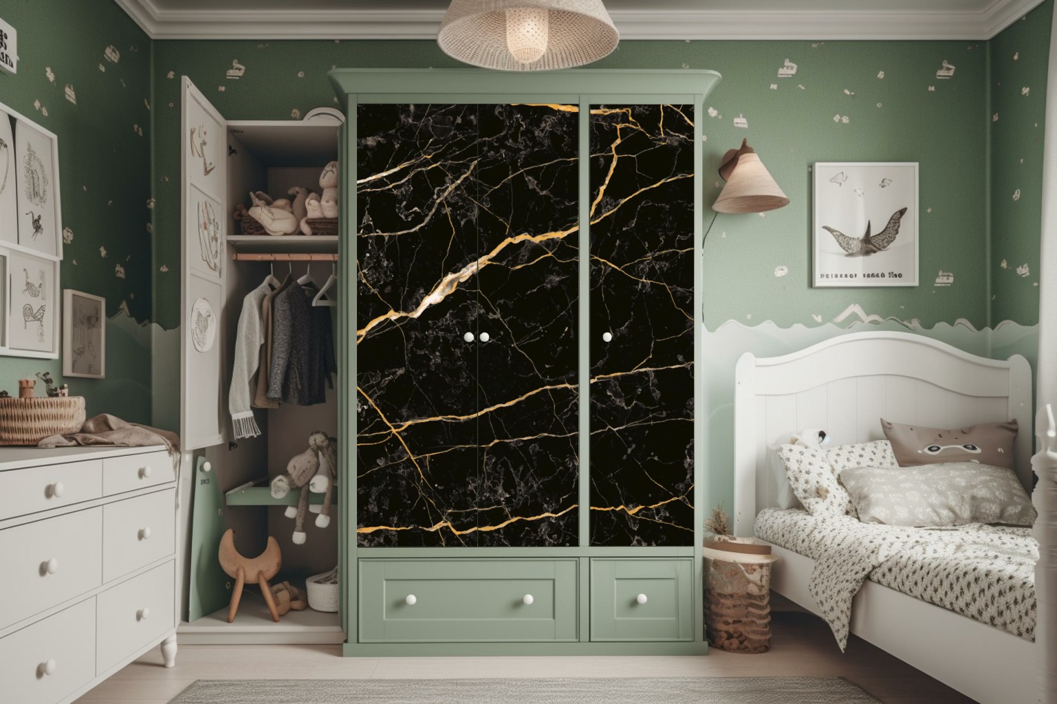 Schrankaufkleber Schwarzer marmor mit goldenen adern