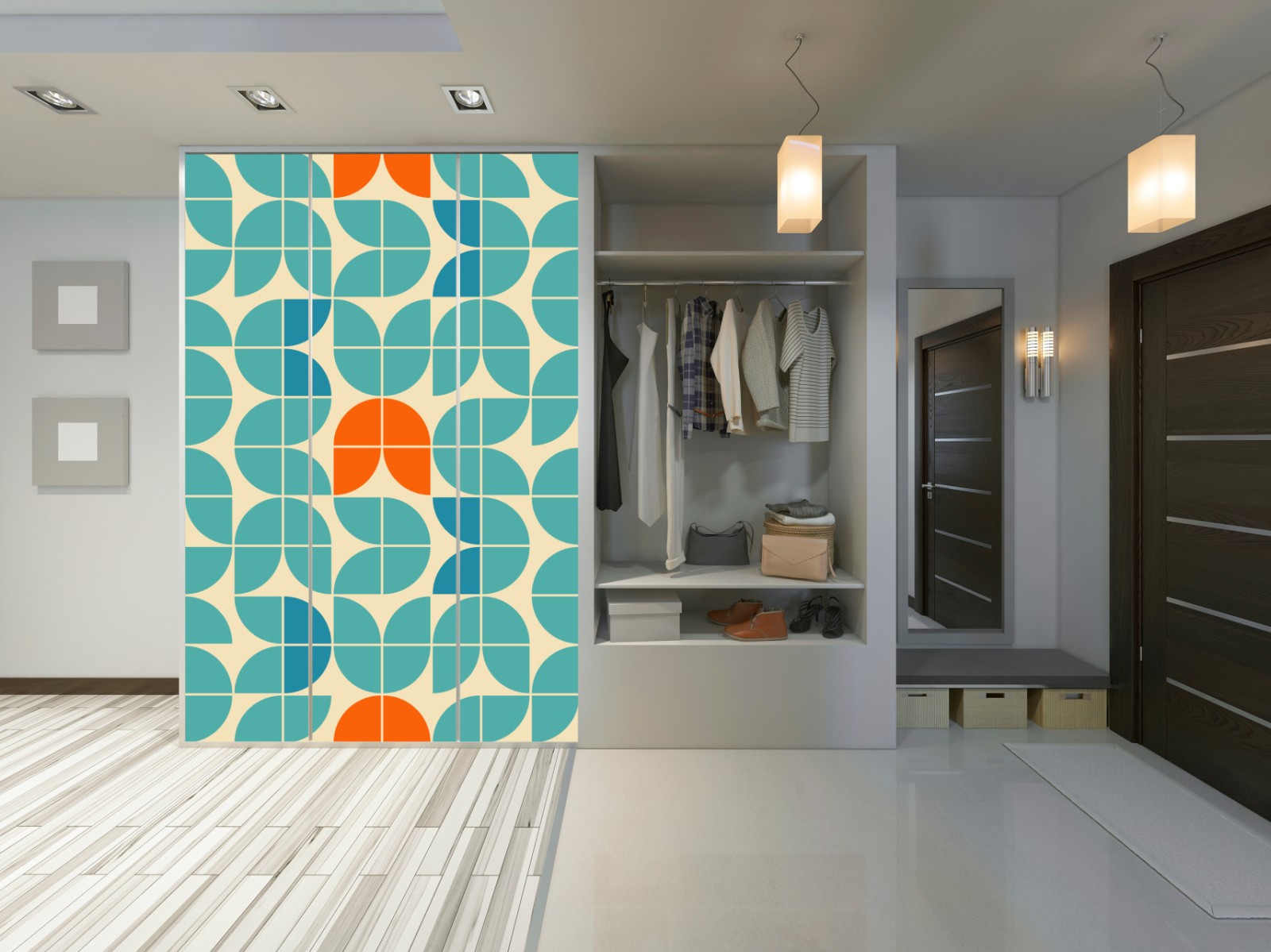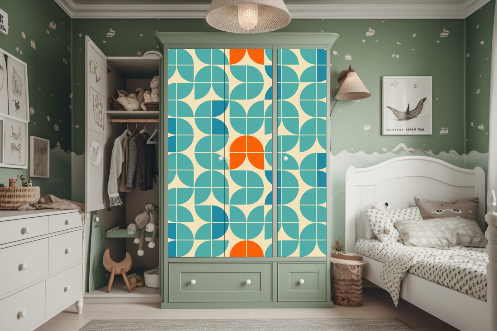 Schrankaufkleber Retro geometrisches fliesenmuster in türkis und orange