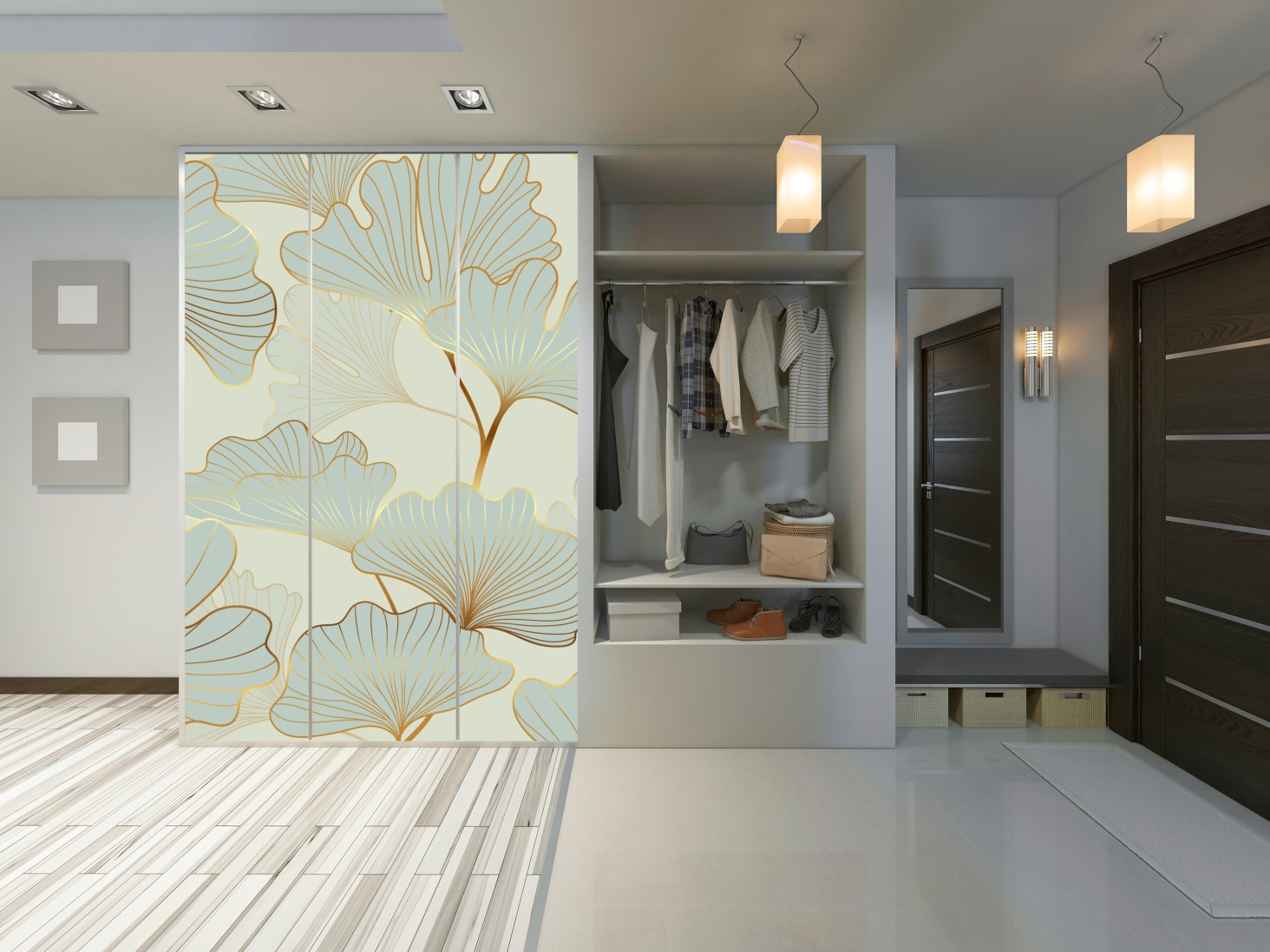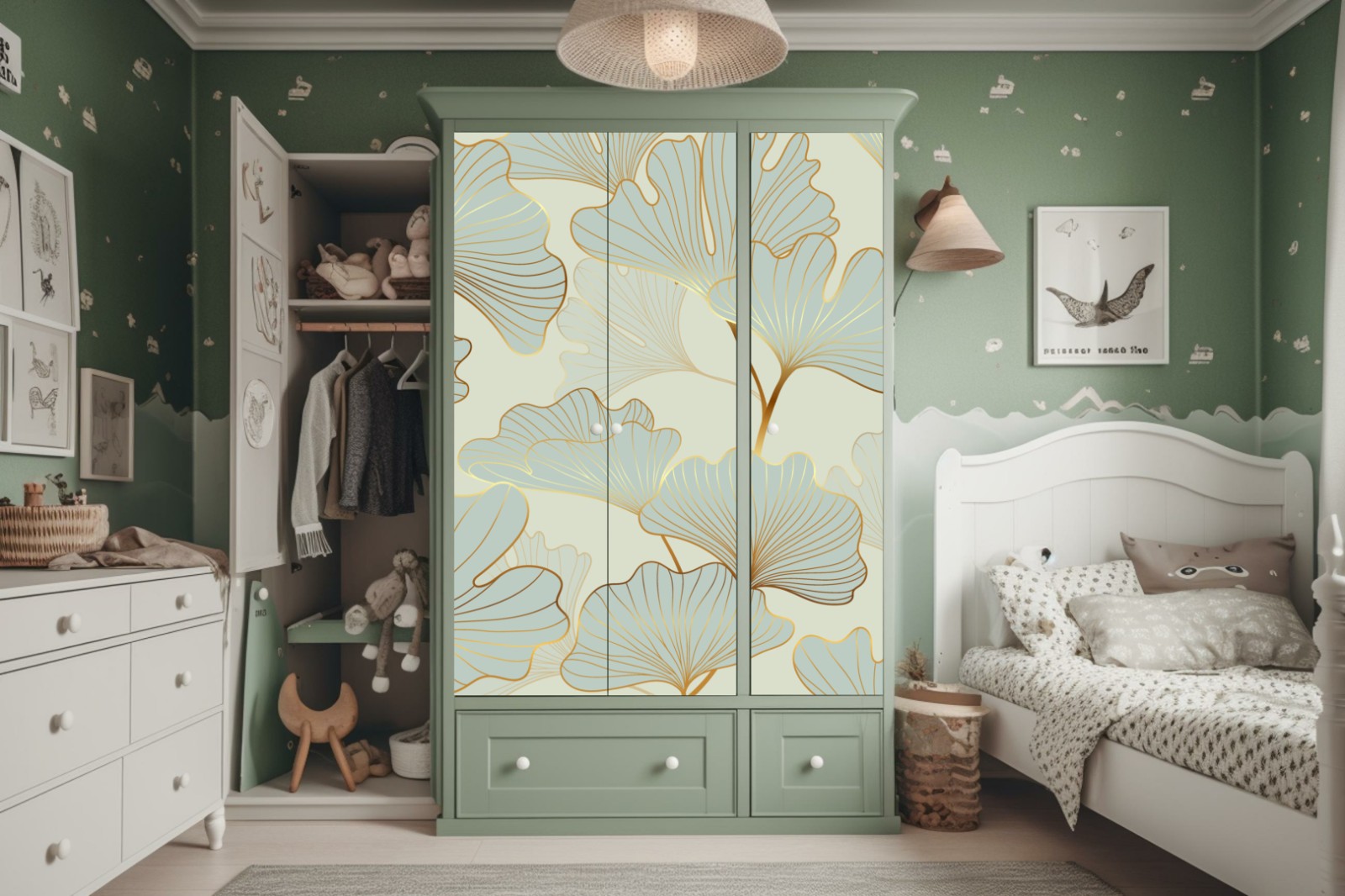 Schrankaufkleber Pastell ginkgo blättermuster mit goldakzenten