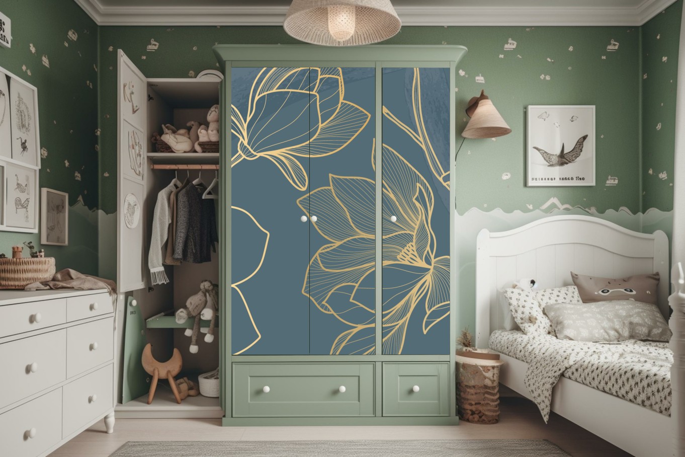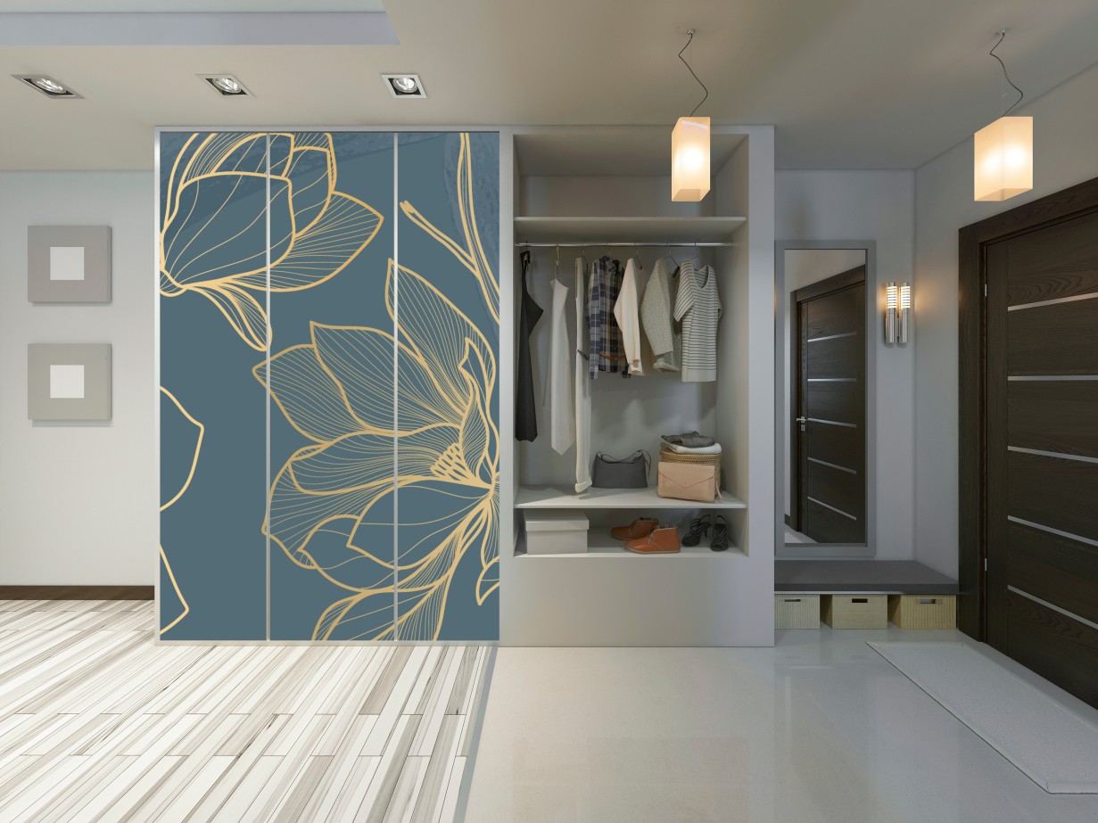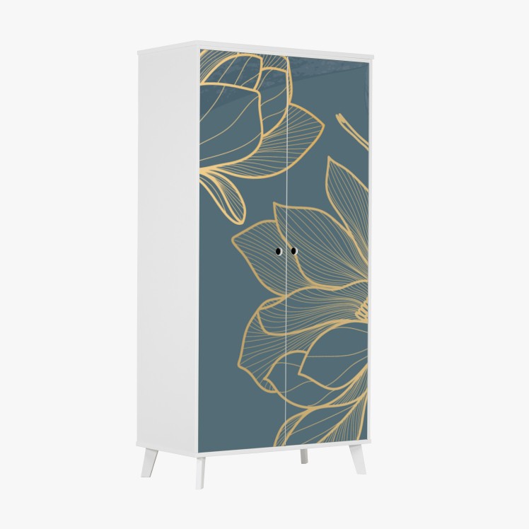 Schrankaufkleber Goldene magnolie auf türkisfarbenem hintergrund