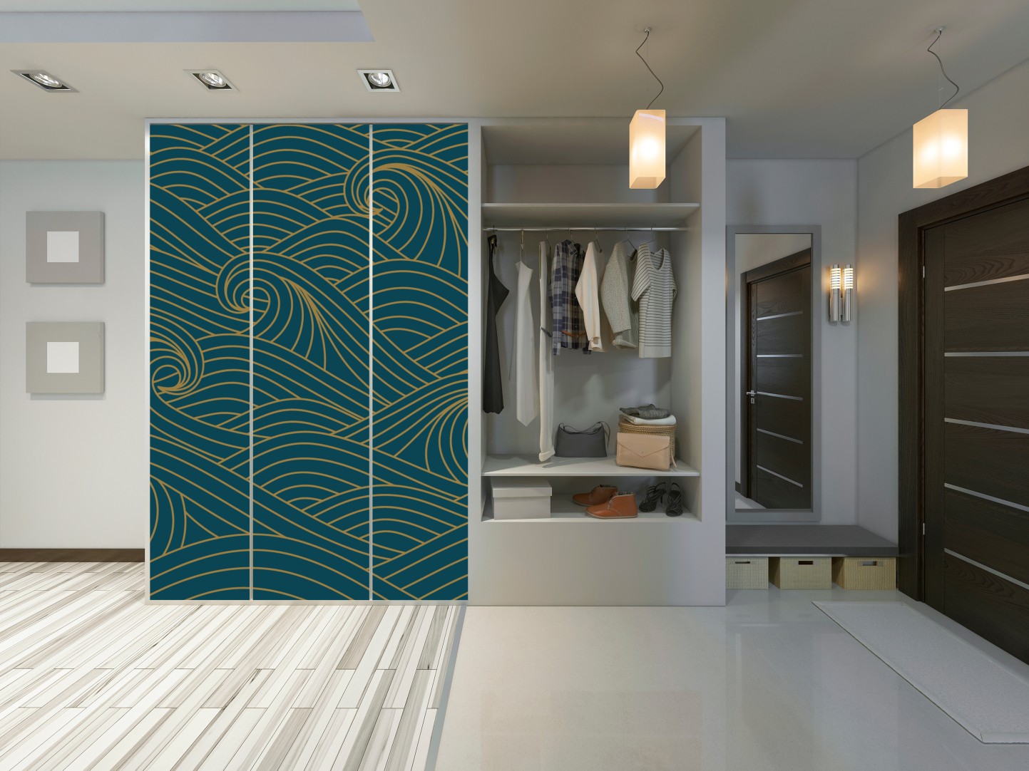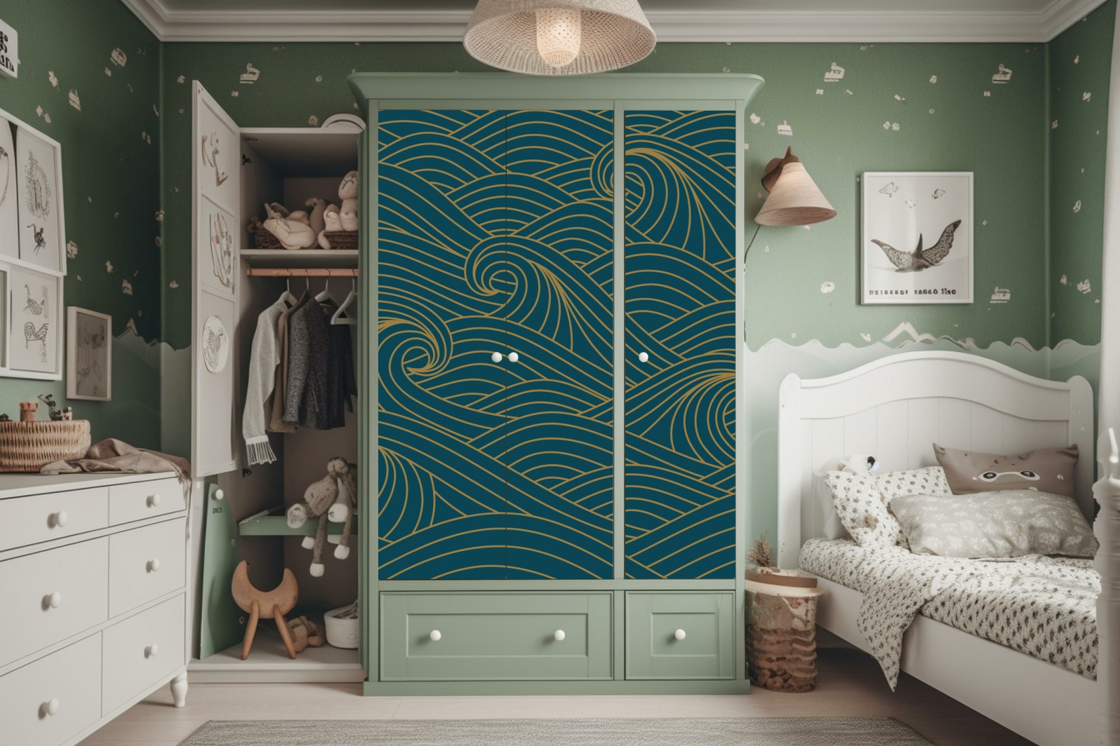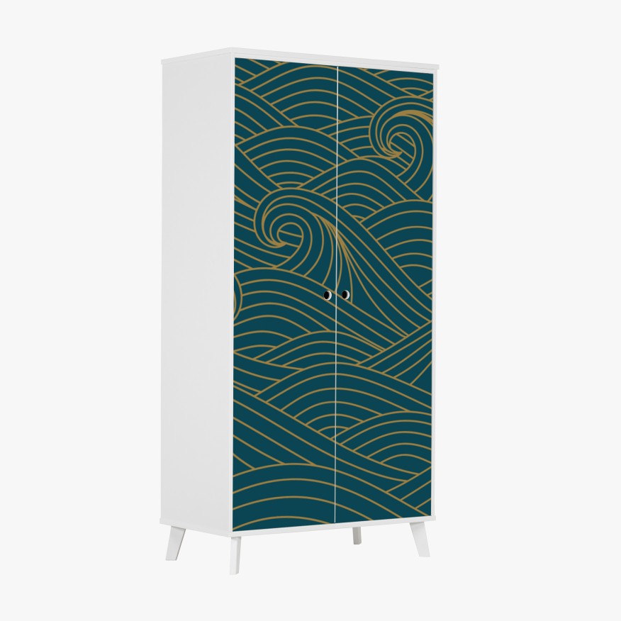 Schrankaufkleber Türkiswellenmuster mit goldlinien