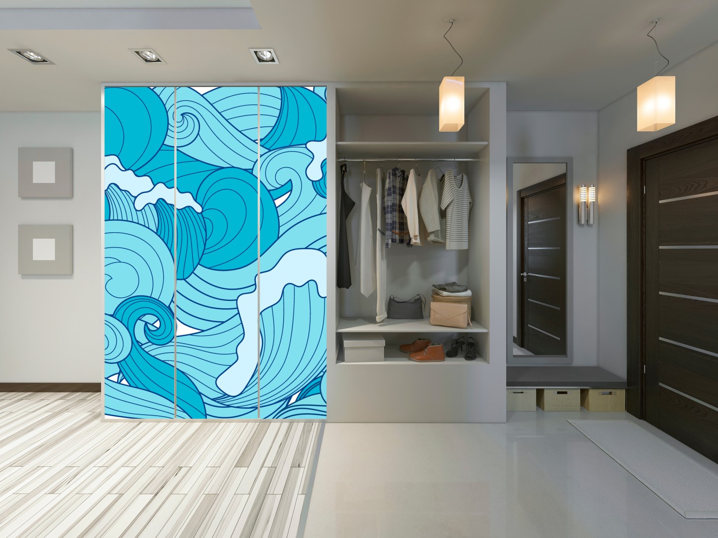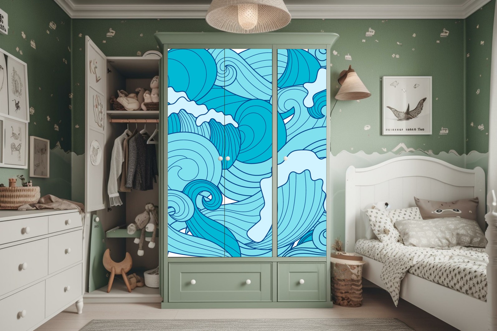 Schrankaufkleber Blaue ozeanwellen illustration