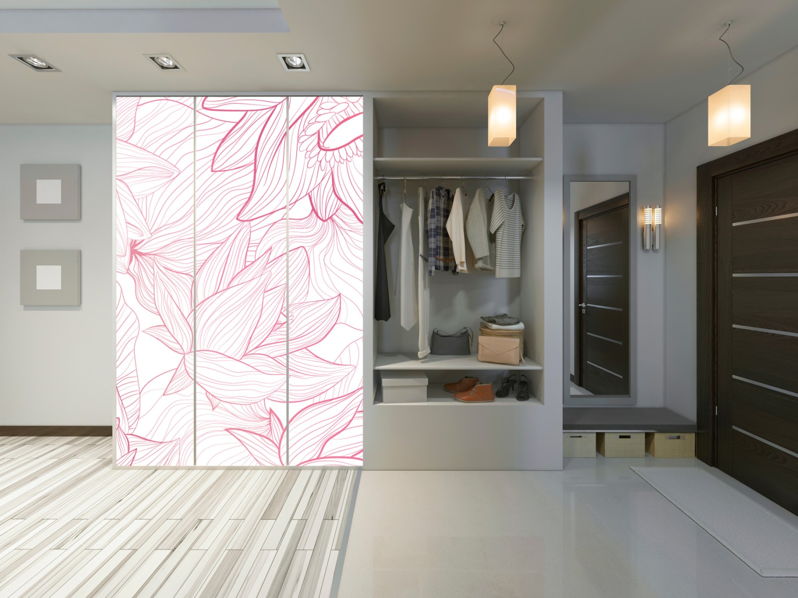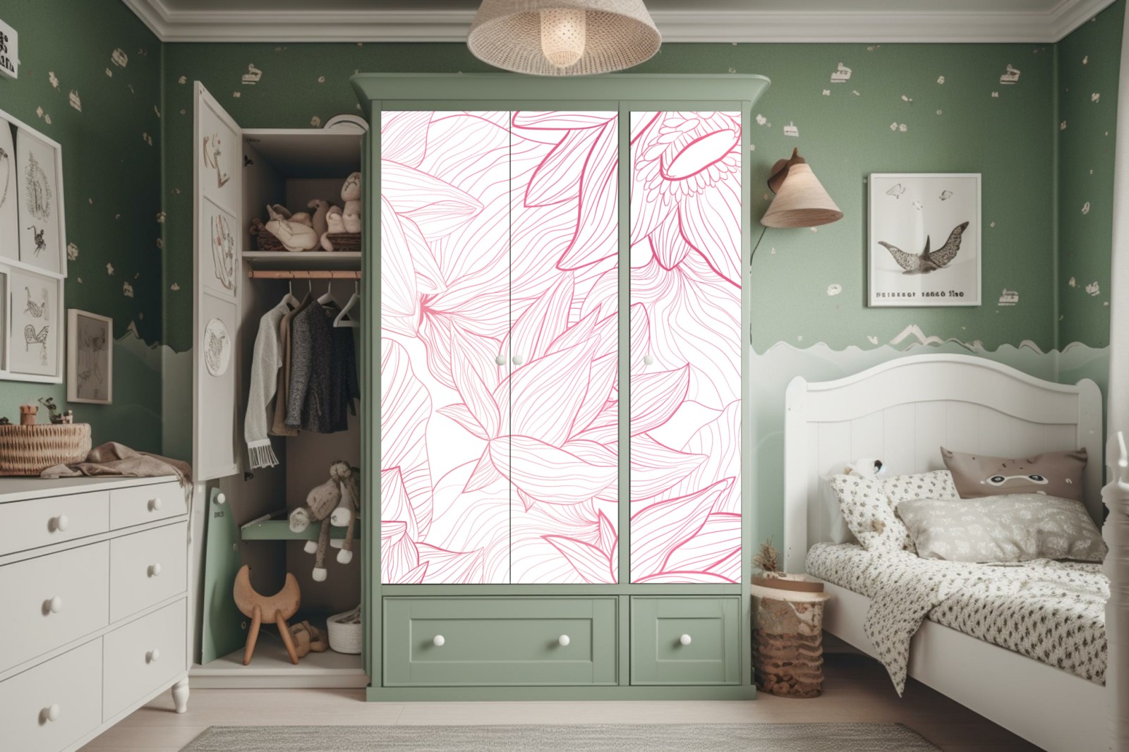 Schrankaufkleber zartes rosa blumenlinienmuster
