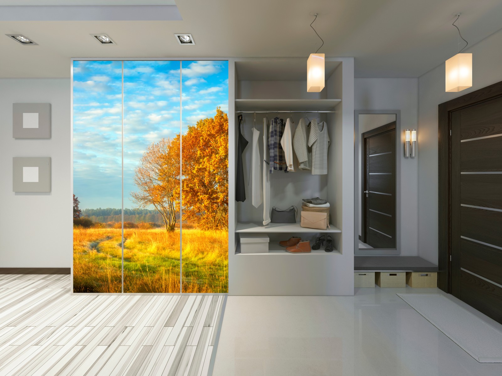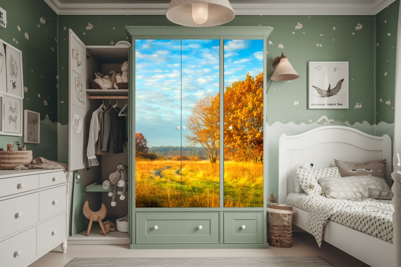 Warme Herbstfarben erhellen eine ruhige Wiese und bringen natürliche Gemütlichkeit in jeden Raum.
