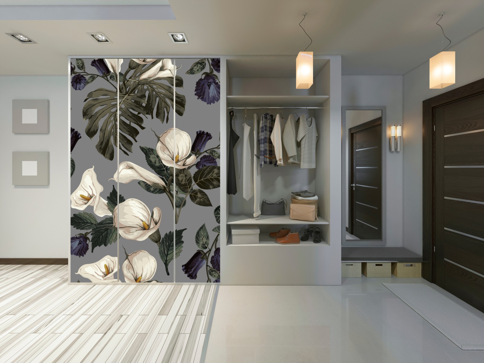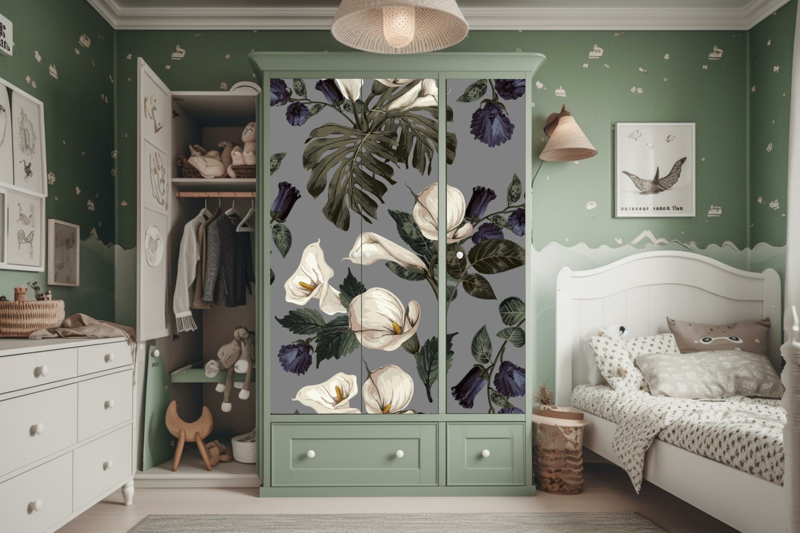 Schrankaufkleber vintage calla blumenmuster auf grauem hintergrund