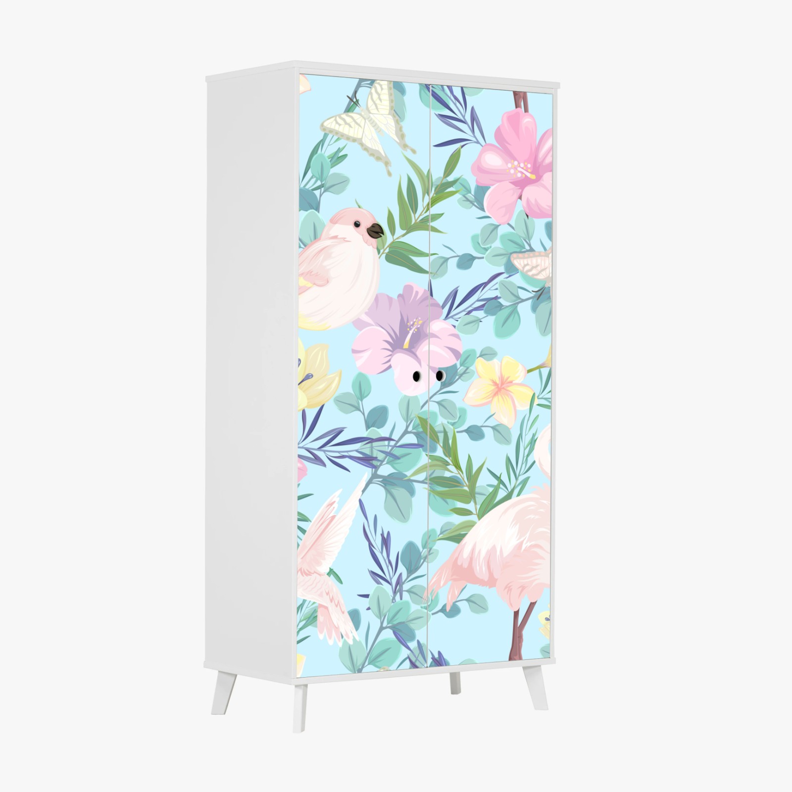 Schrankaufkleber Pastell tropisches vögel- und blumenmuster