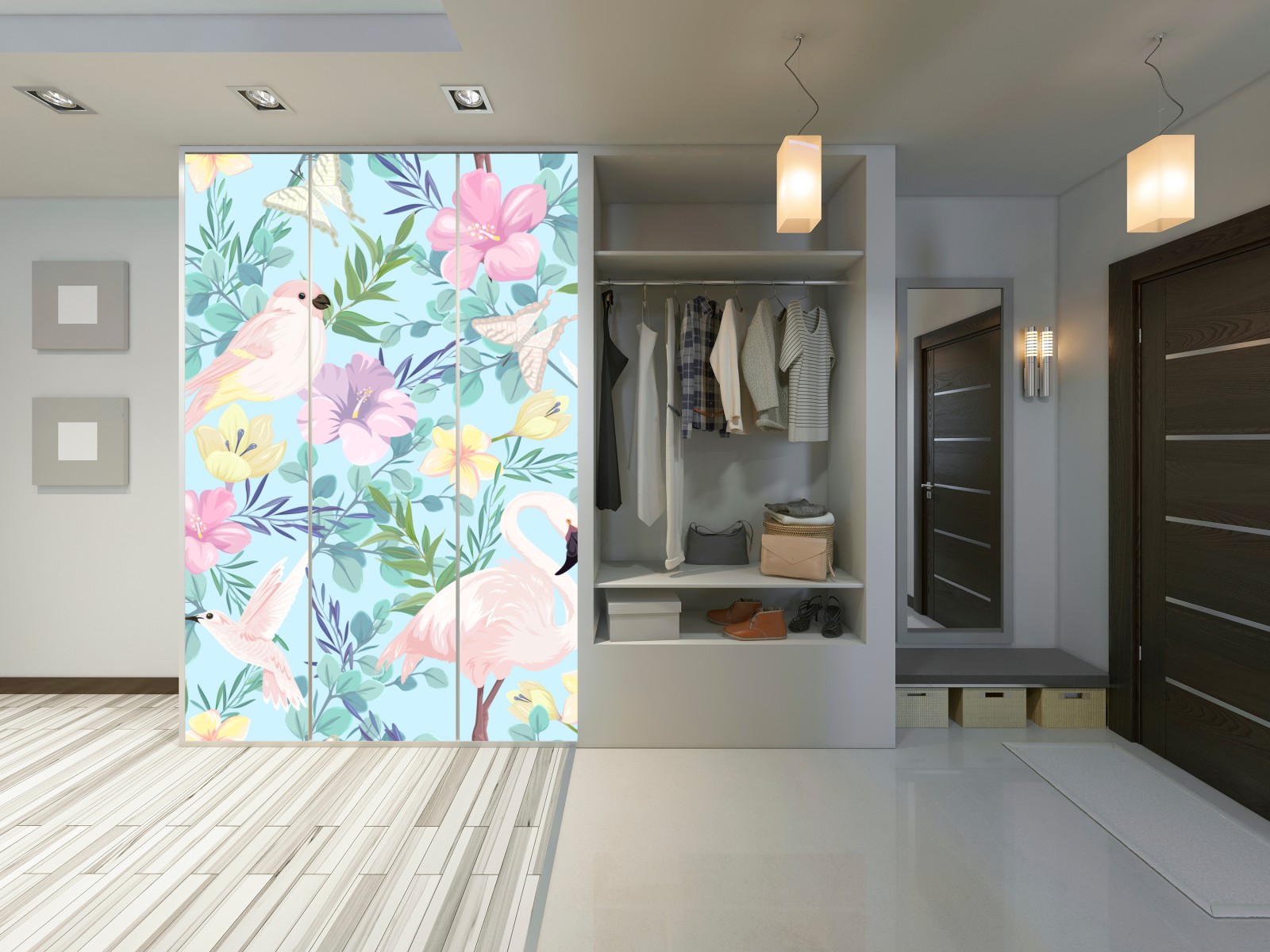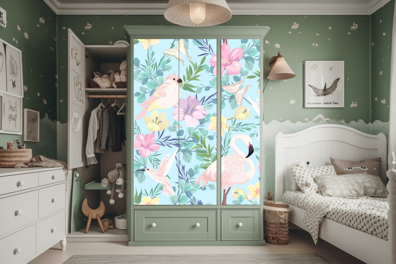 Schrankaufkleber pastell tropisches vögel- und blumenmuster