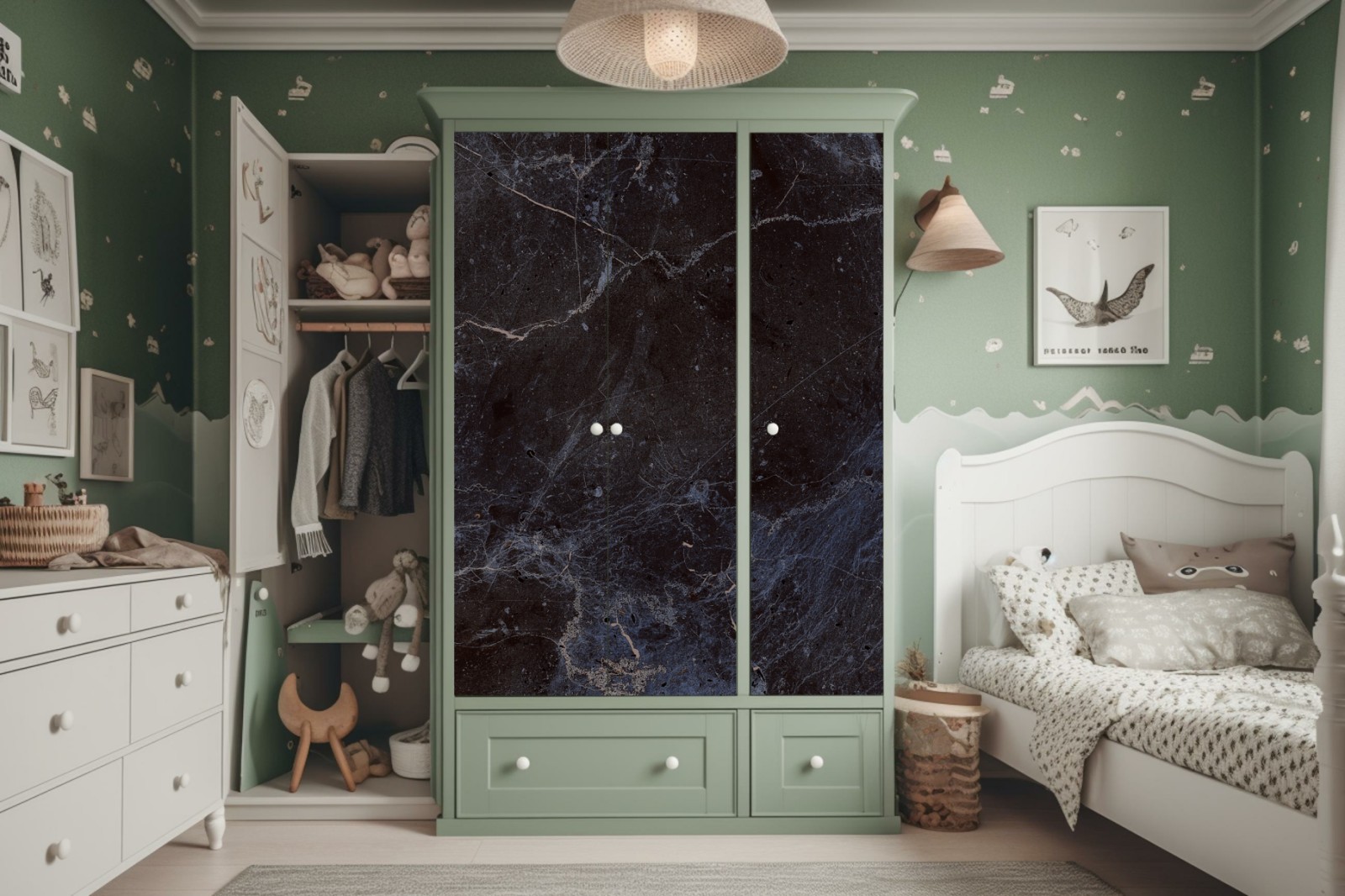 Schrankaufkleber dunkle marmortextur mit blauen adern