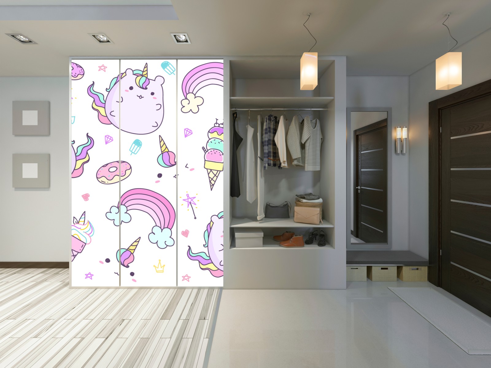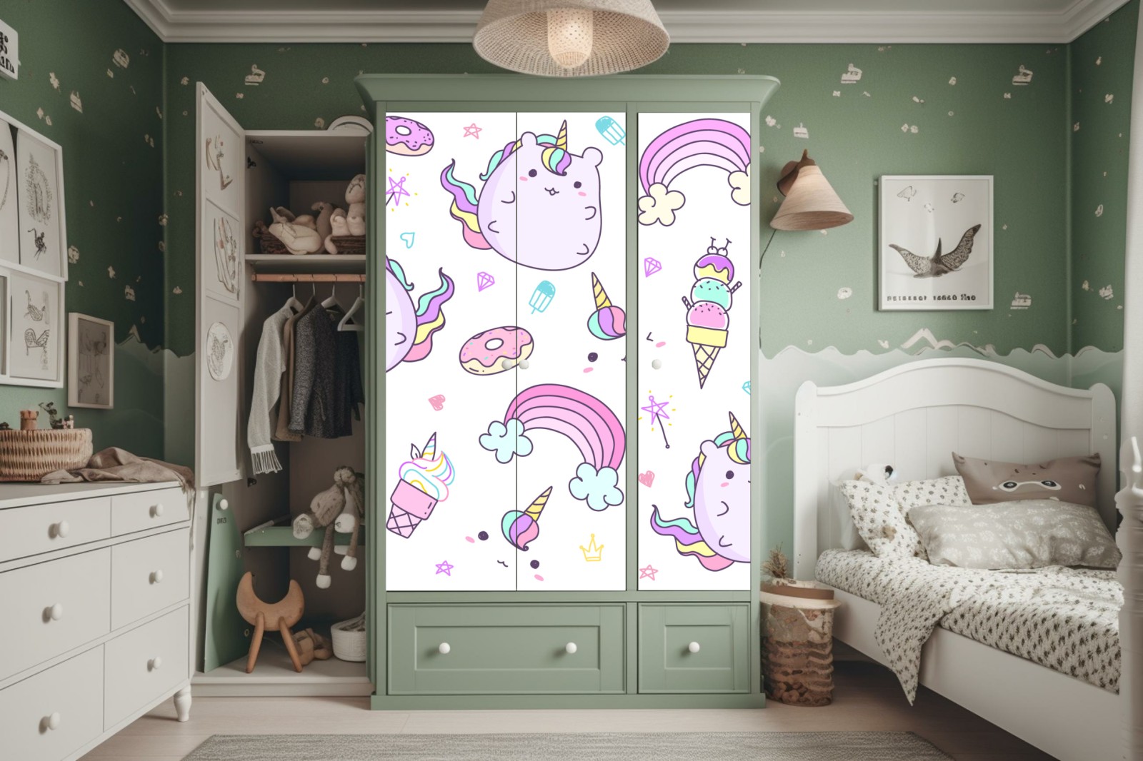 Schrankaufkleber verspieltes pastell-einhorn-katzenmuster