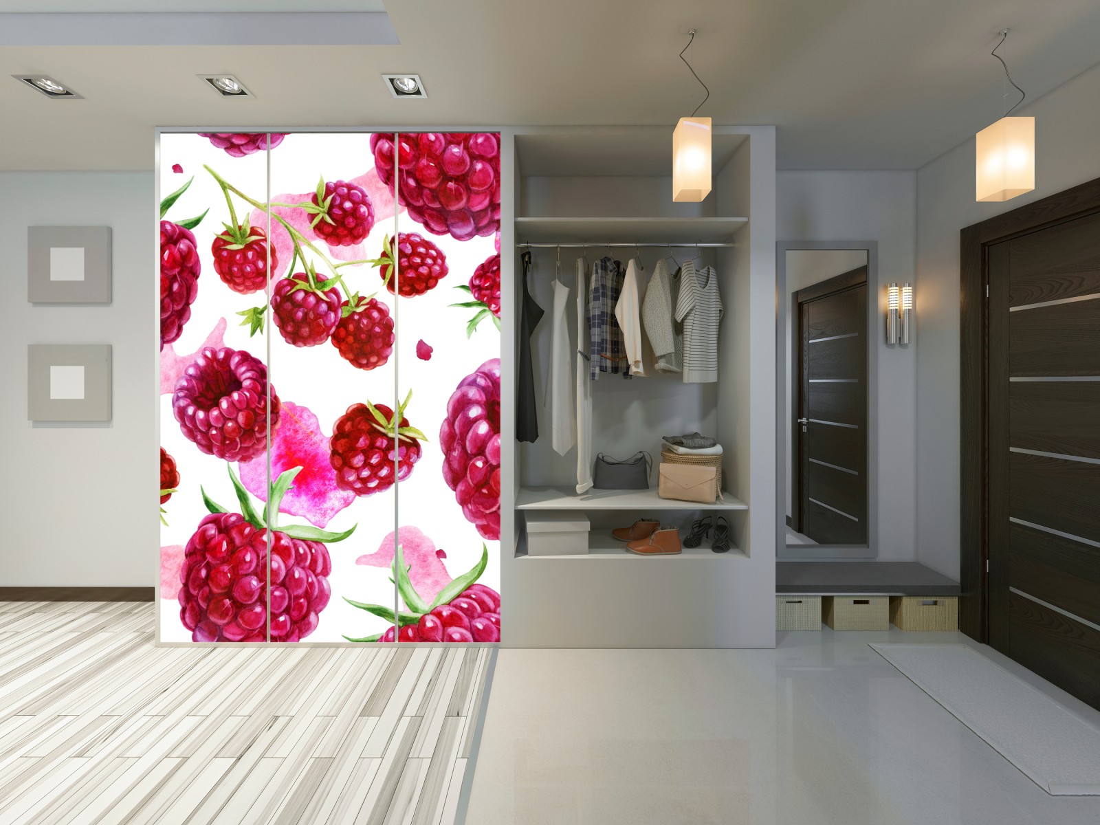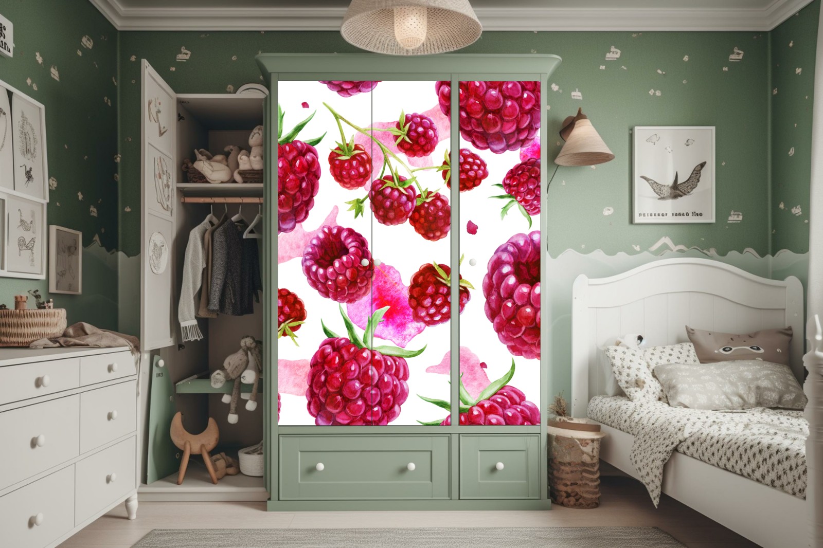 lebhafte aquarell himbeeren bilden ein frisches, verspieltes muster, das küche und esszimmer aufhellt.