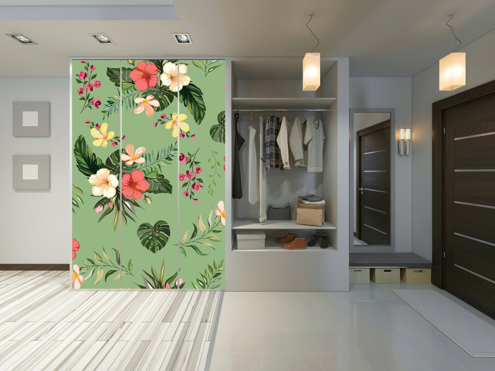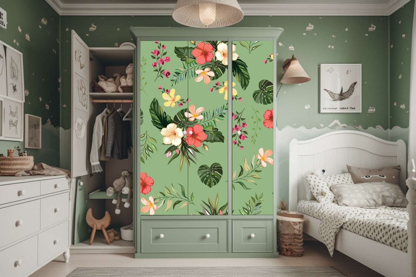 Schrankaufkleber grünes tropisches hibiskusmuster