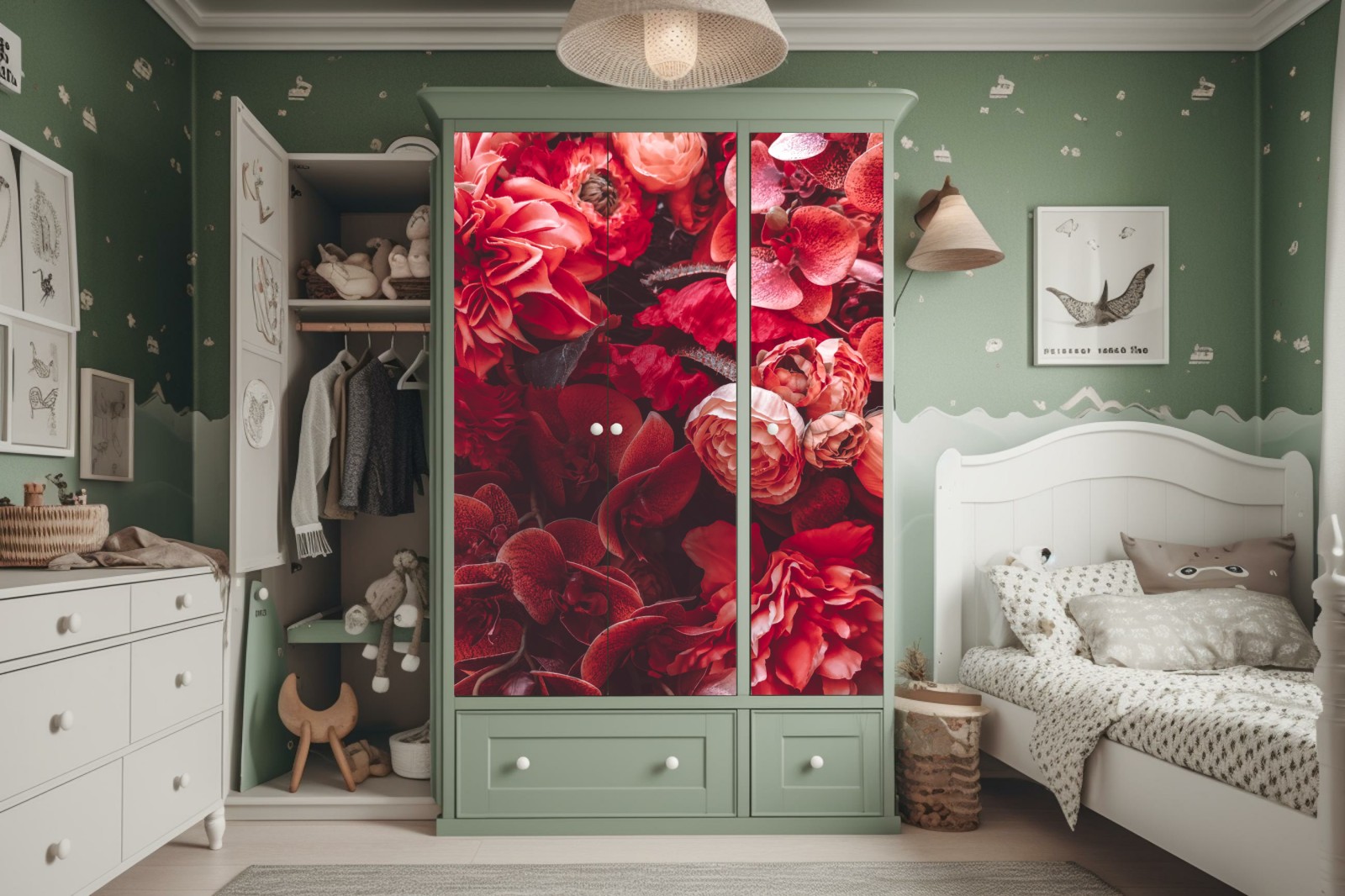 Schrankaufkleber prächtiges blütenmeer in tiefroten tönen