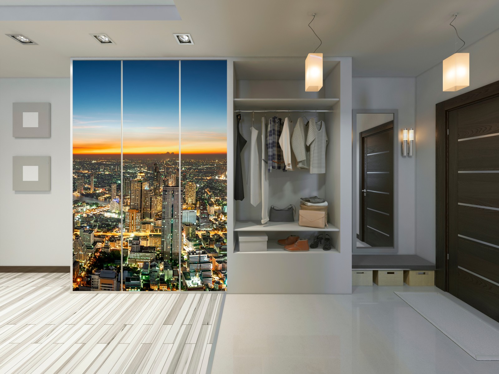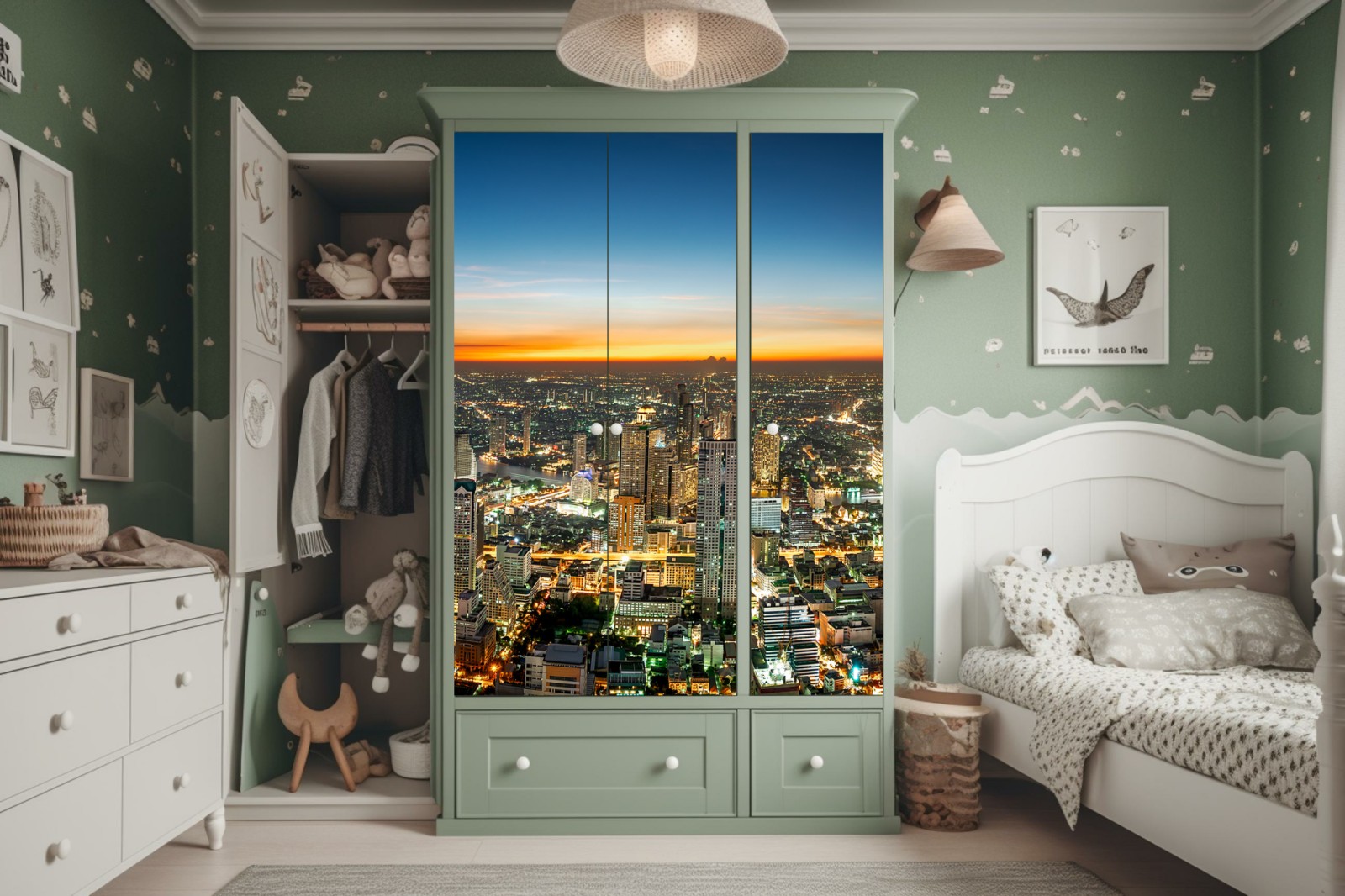 Schrankaufkleber panorama von Bangkok bei dämmerung