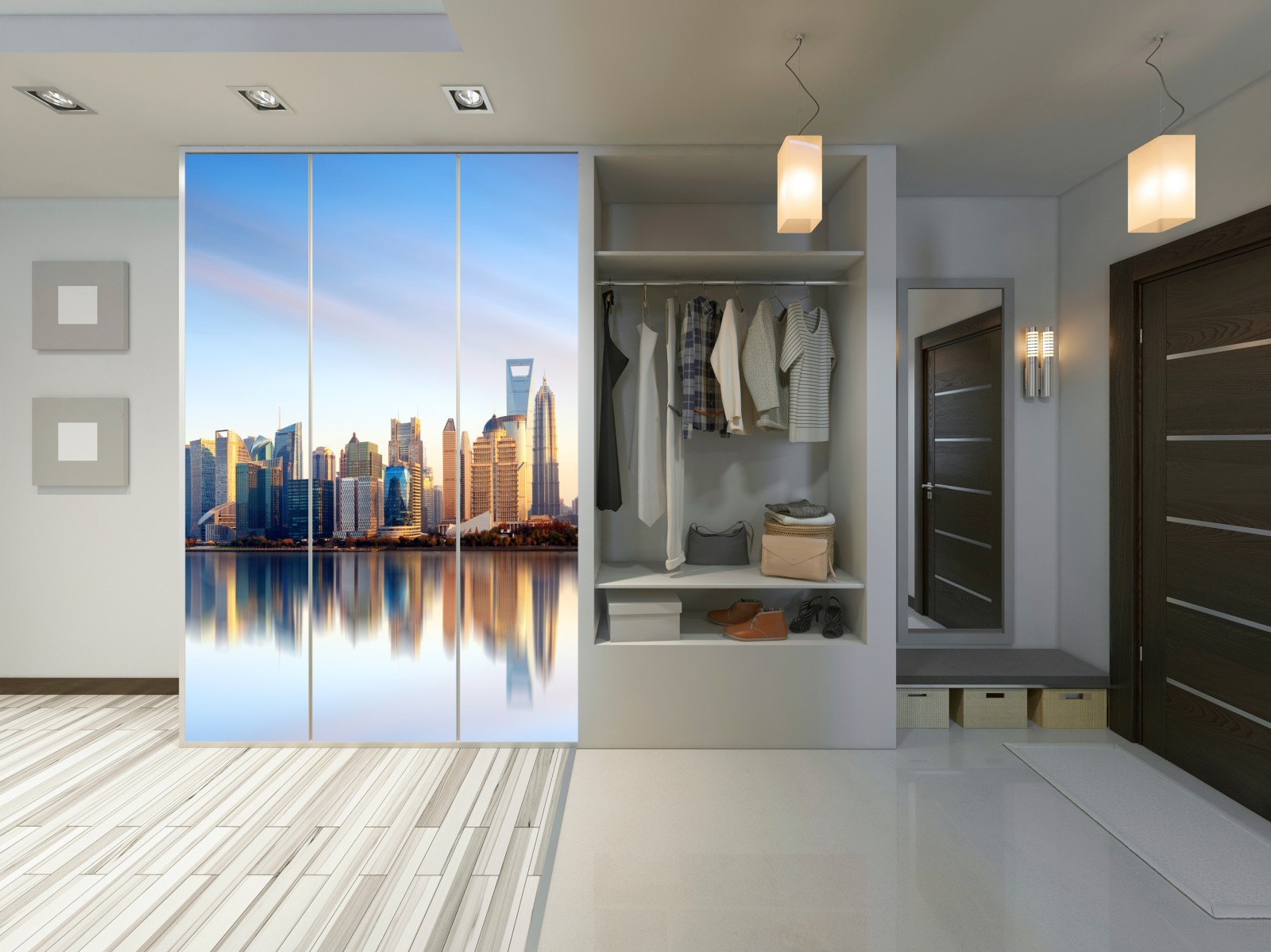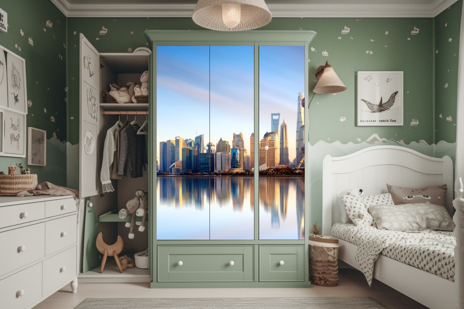 Schrankaufkleber Shanghai skyline spiegelung bei sonnenaufgang