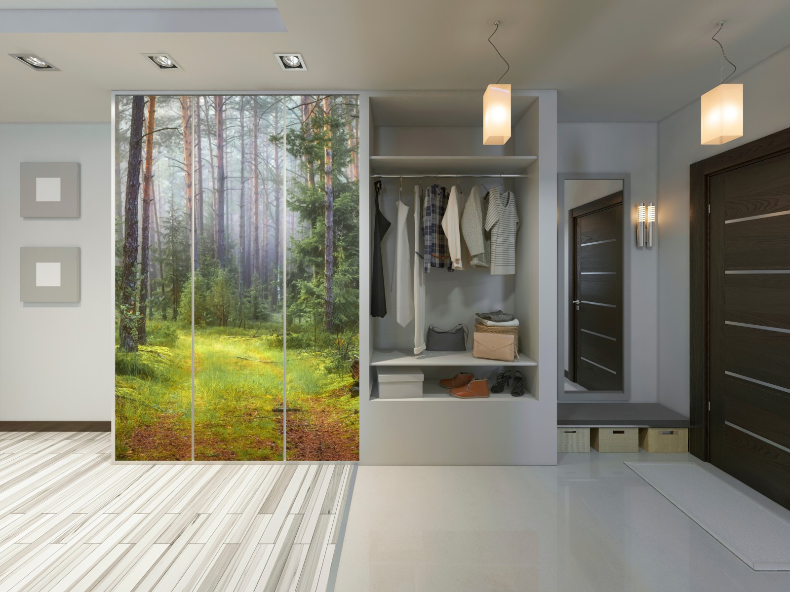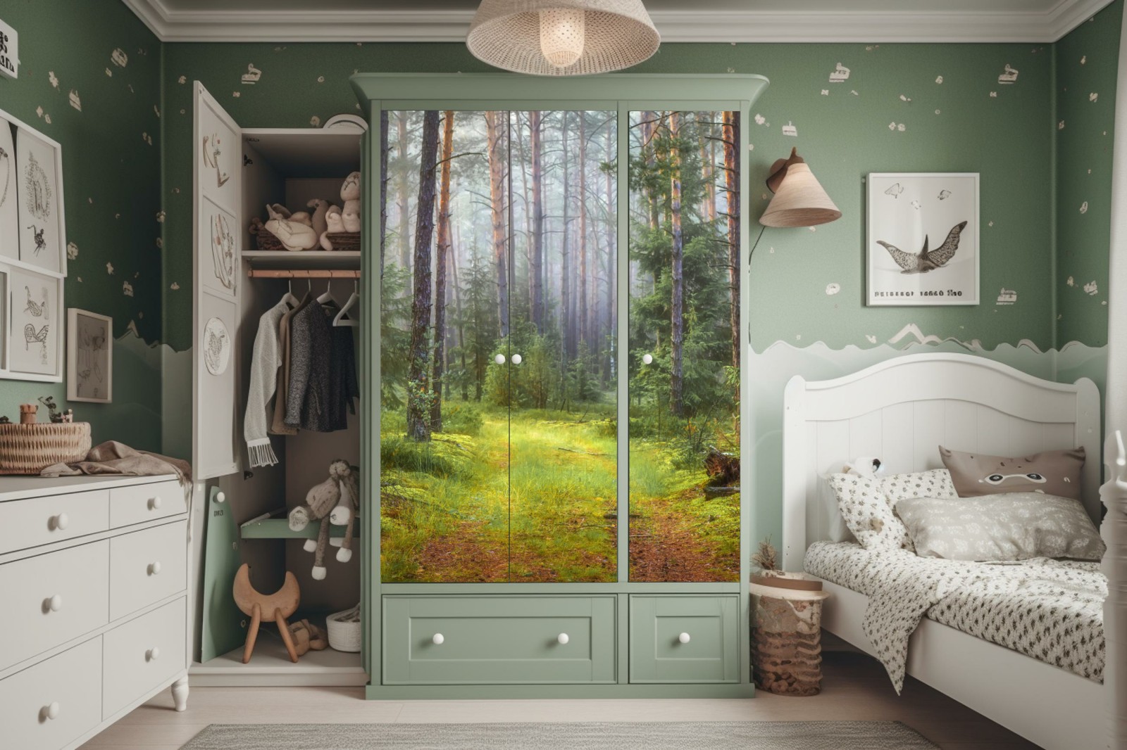 Schrankaufkleber nebliger kiefernwald mit pfad