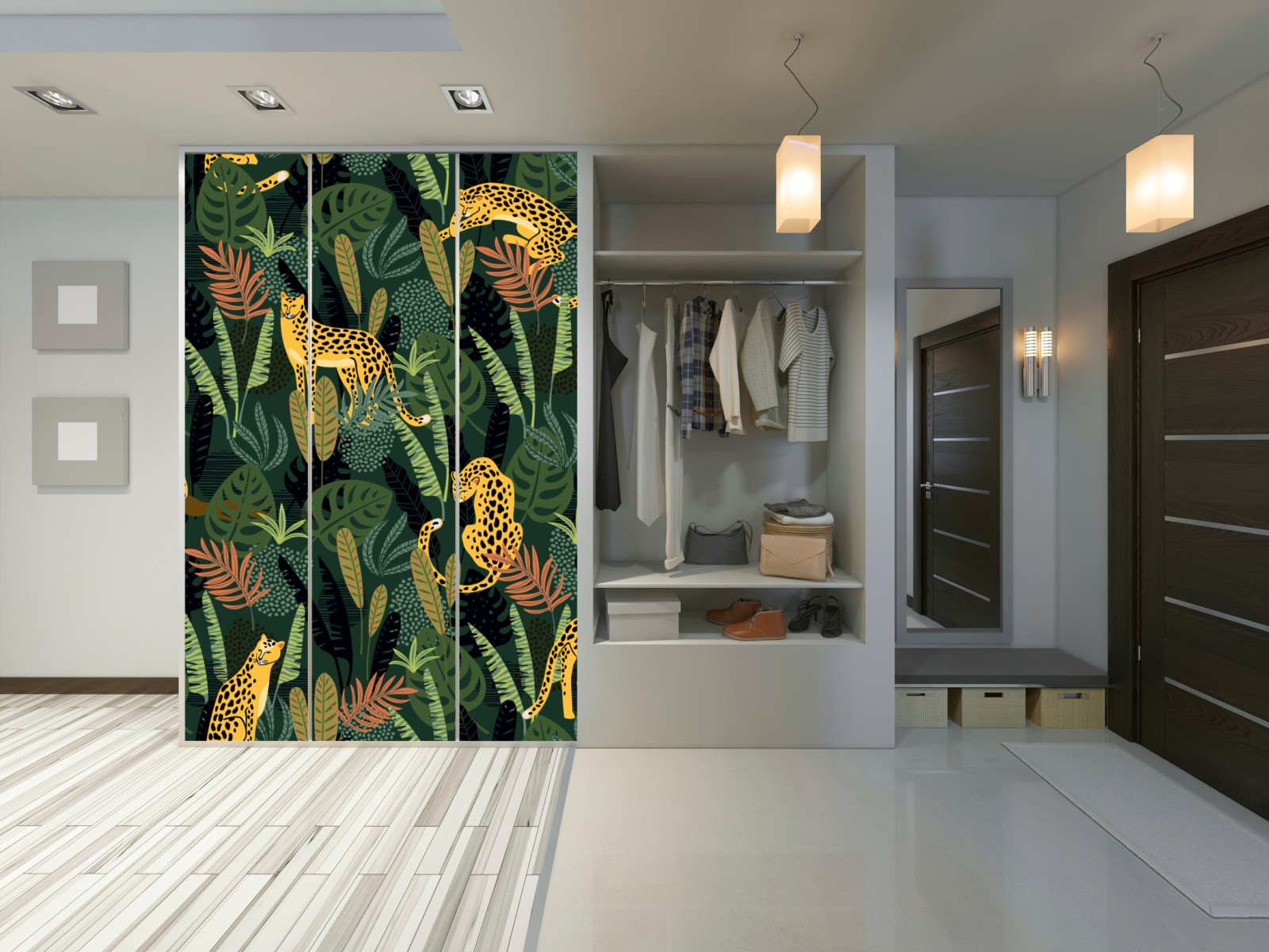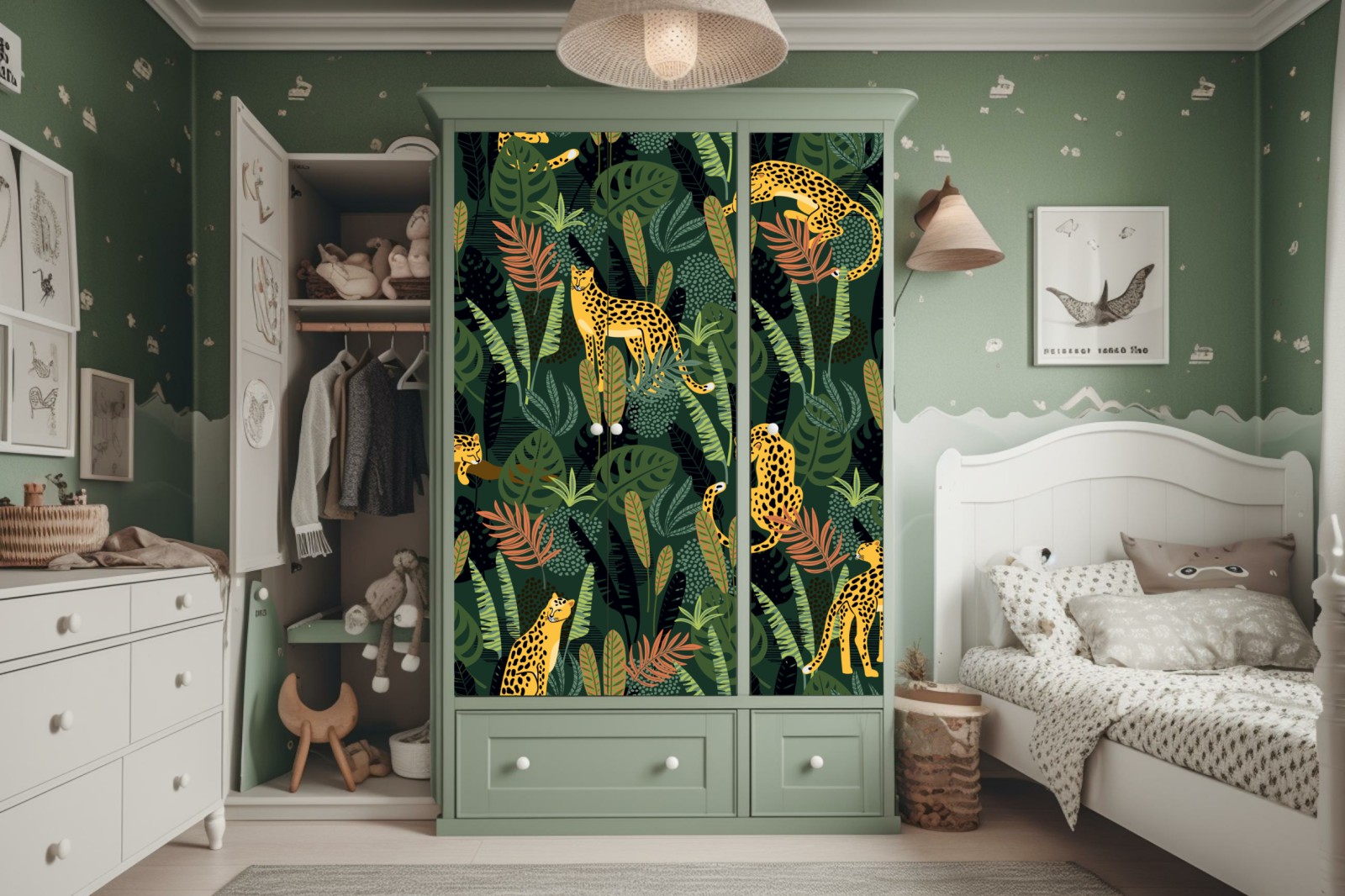 lebendiges tropisches muster mit leoparden und üppigem laub bringt exotische energie und verspielten charme in jeden raum.