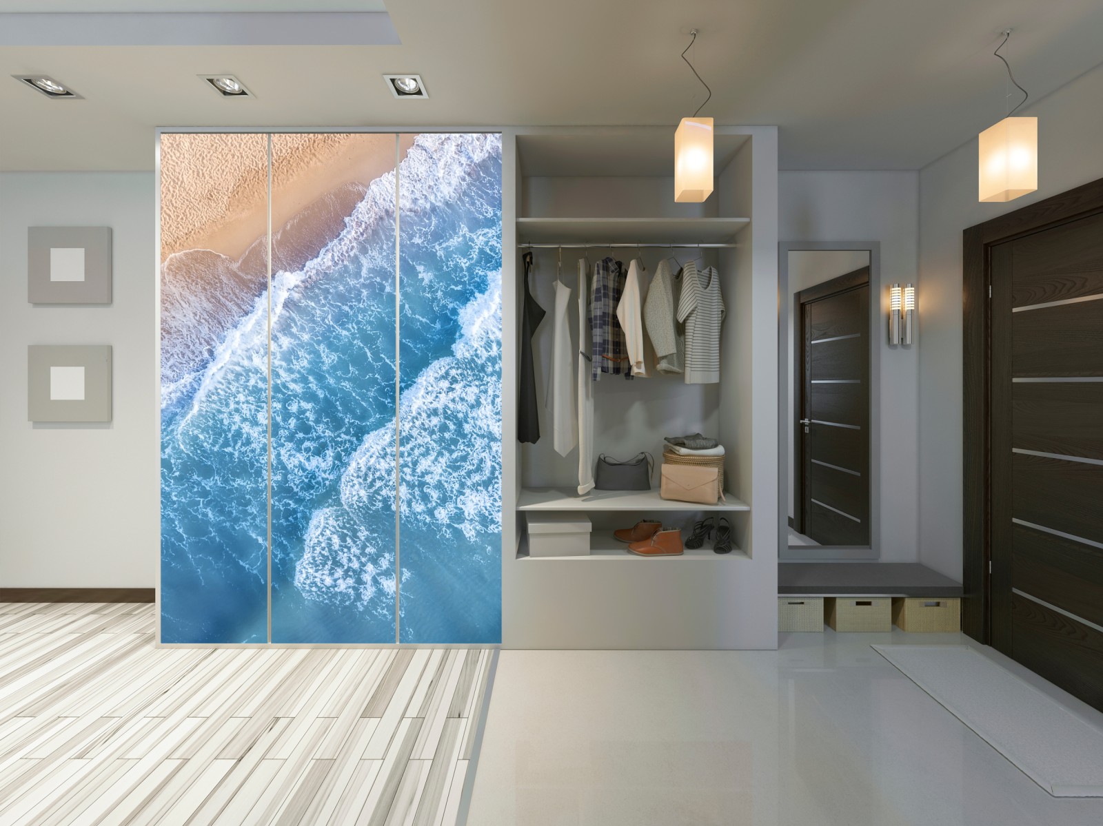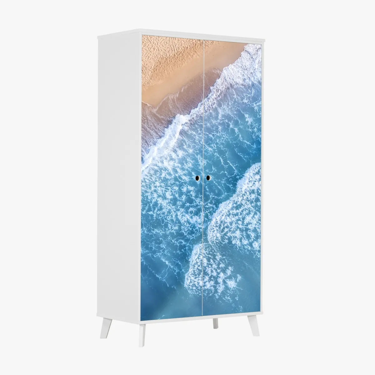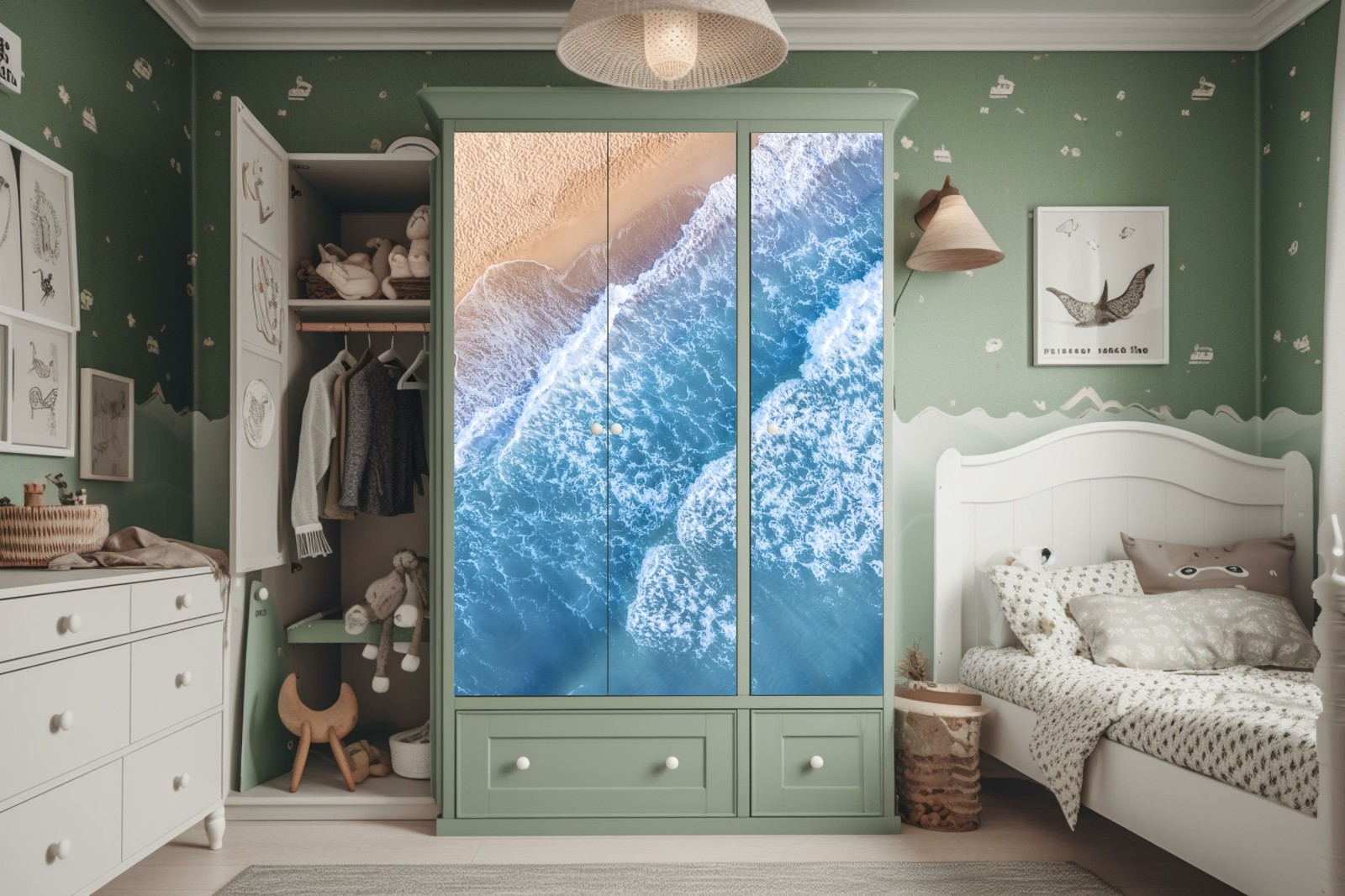 Schrankaufkleber luftaufnahme türkiser wellen an sandigem strand
