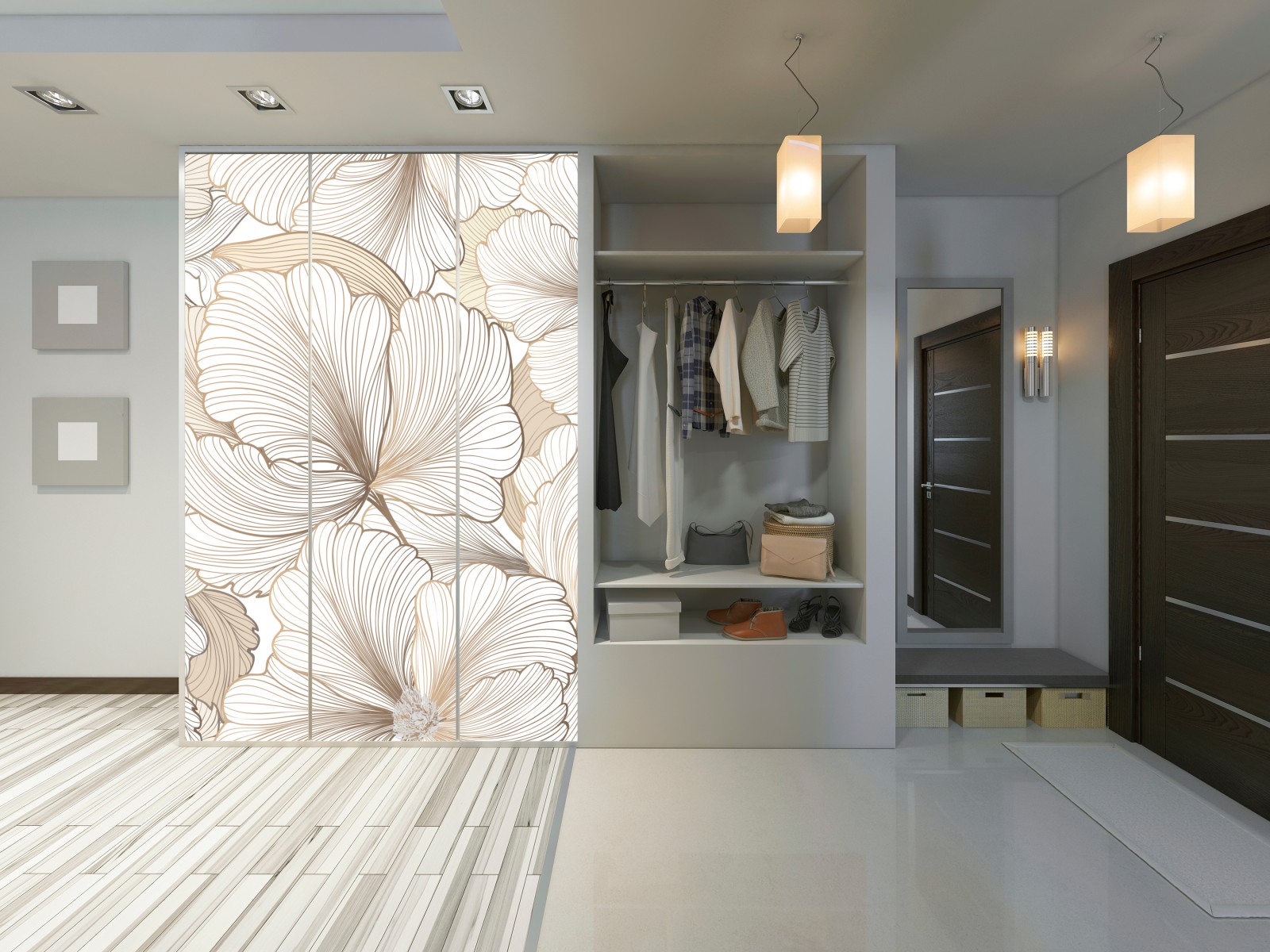 Elegante handgezeichnete beige Blumen schaffen ein ruhiges, modernes Muster, ideal für Schlafzimmer und Wohnzimmer.