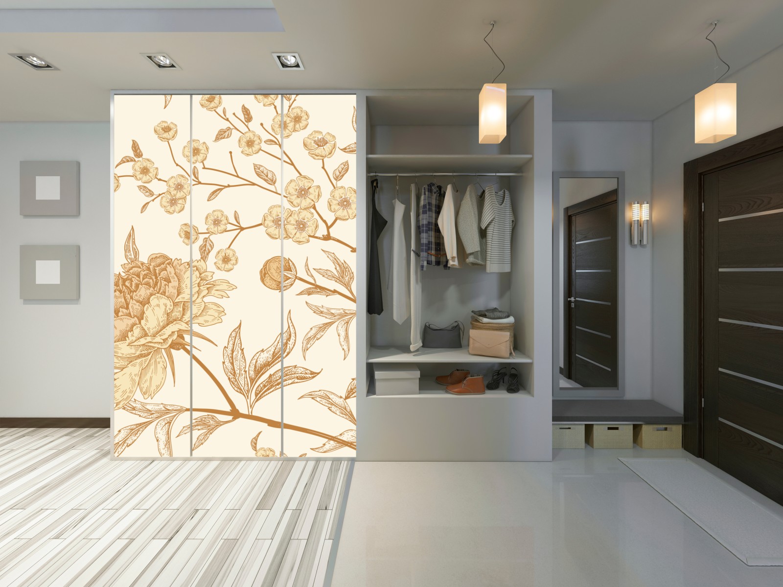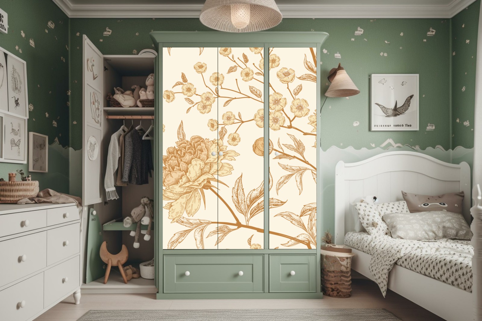 Schrankaufkleber vintage beiges blumenmuster mit pfingstrosen