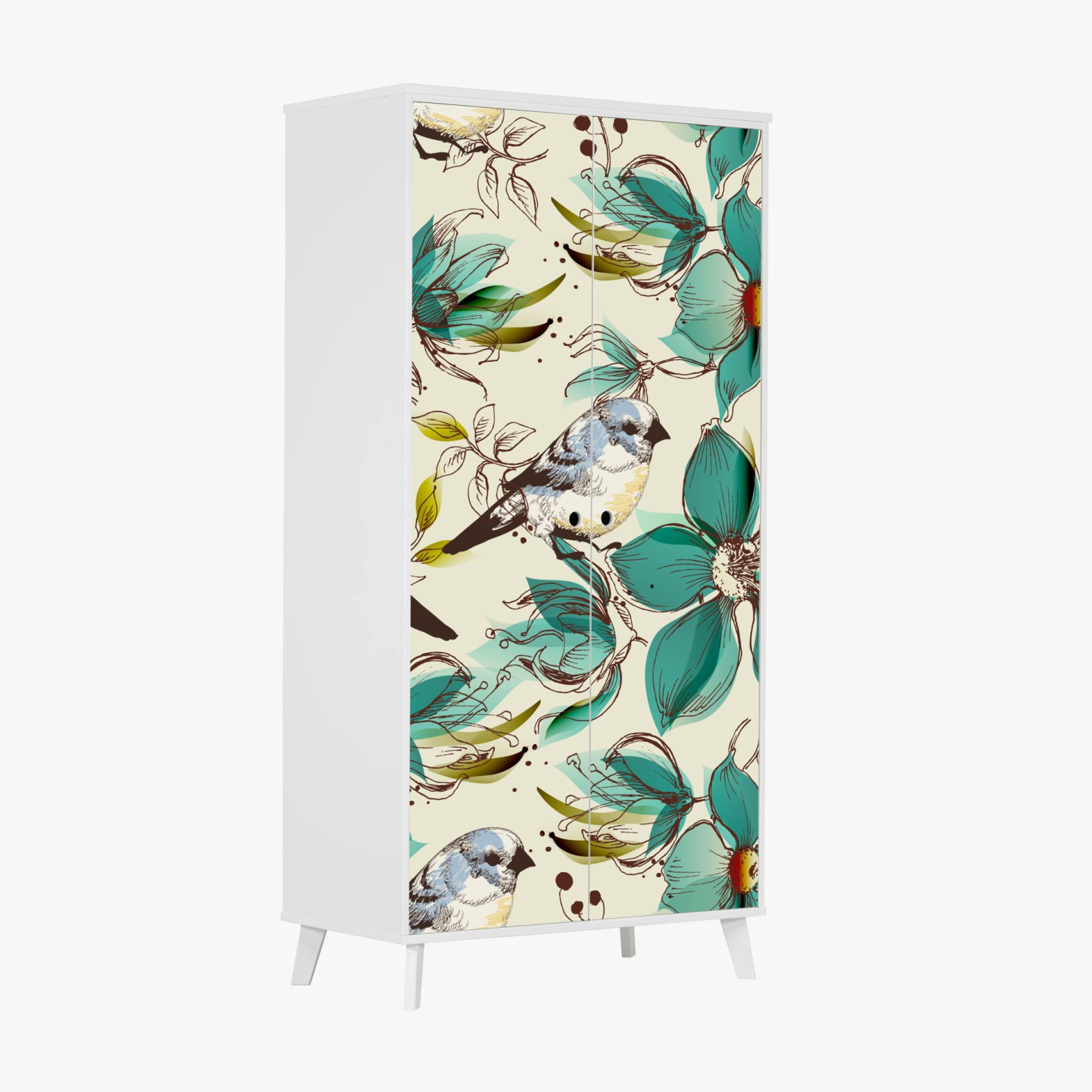 Schrankaufkleber Retro türkis blumen- und vogelmuster